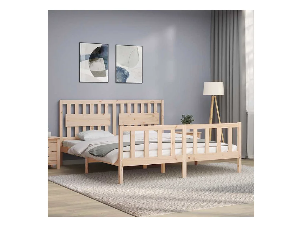 Struttura letto marrone 180 x 220 cm in legno massello di pino