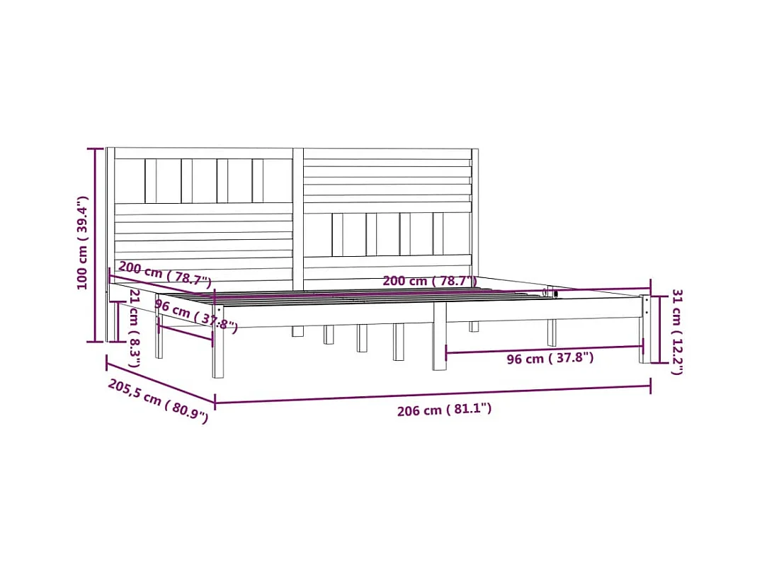 Struttura letto senza materasso in legno massello di pino grigio 200x200 cm