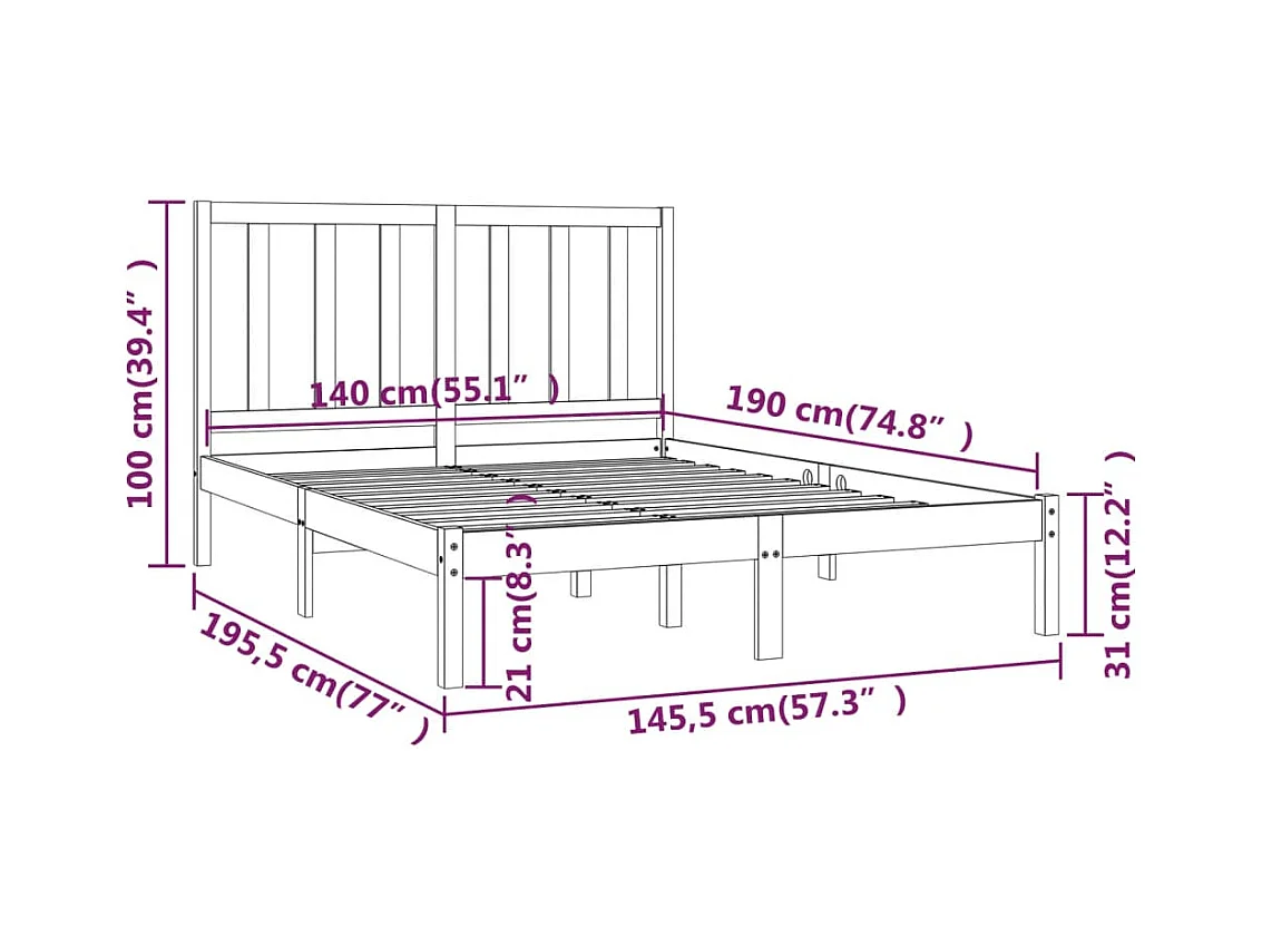 Struttura letto senza materasso in legno massello di pino nero 140x190 cm