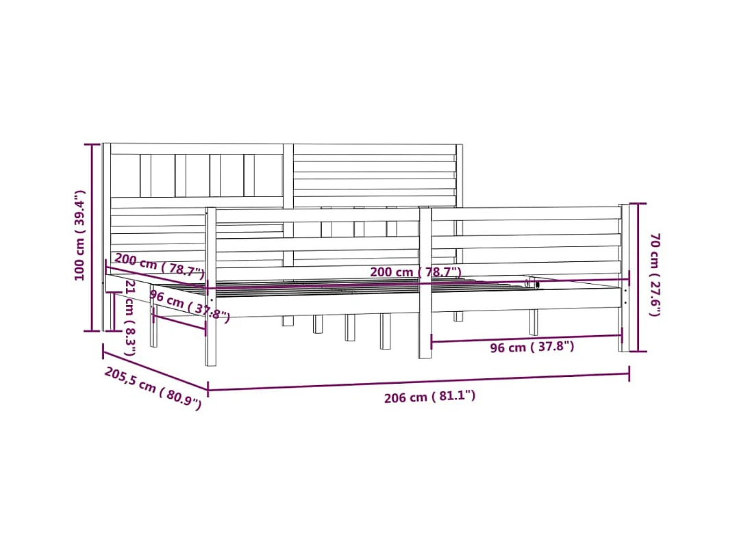Struttura letto senza materasso in legno massello grigio 200x200 cm