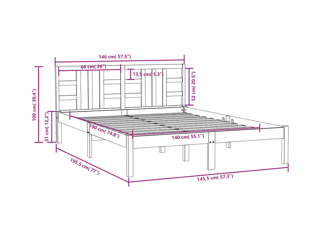 Struttura letto senza materasso nero 140x190 cm in legno massello