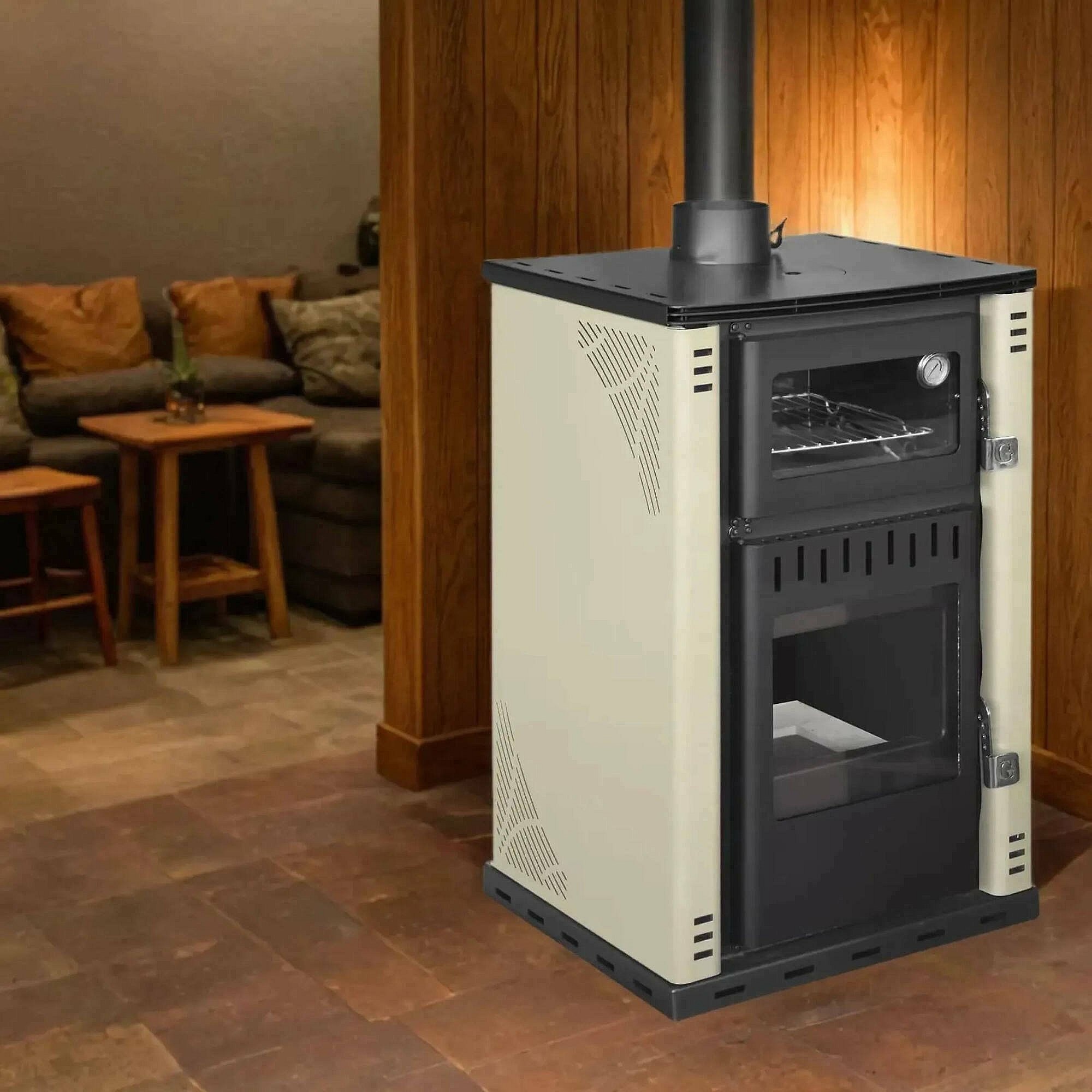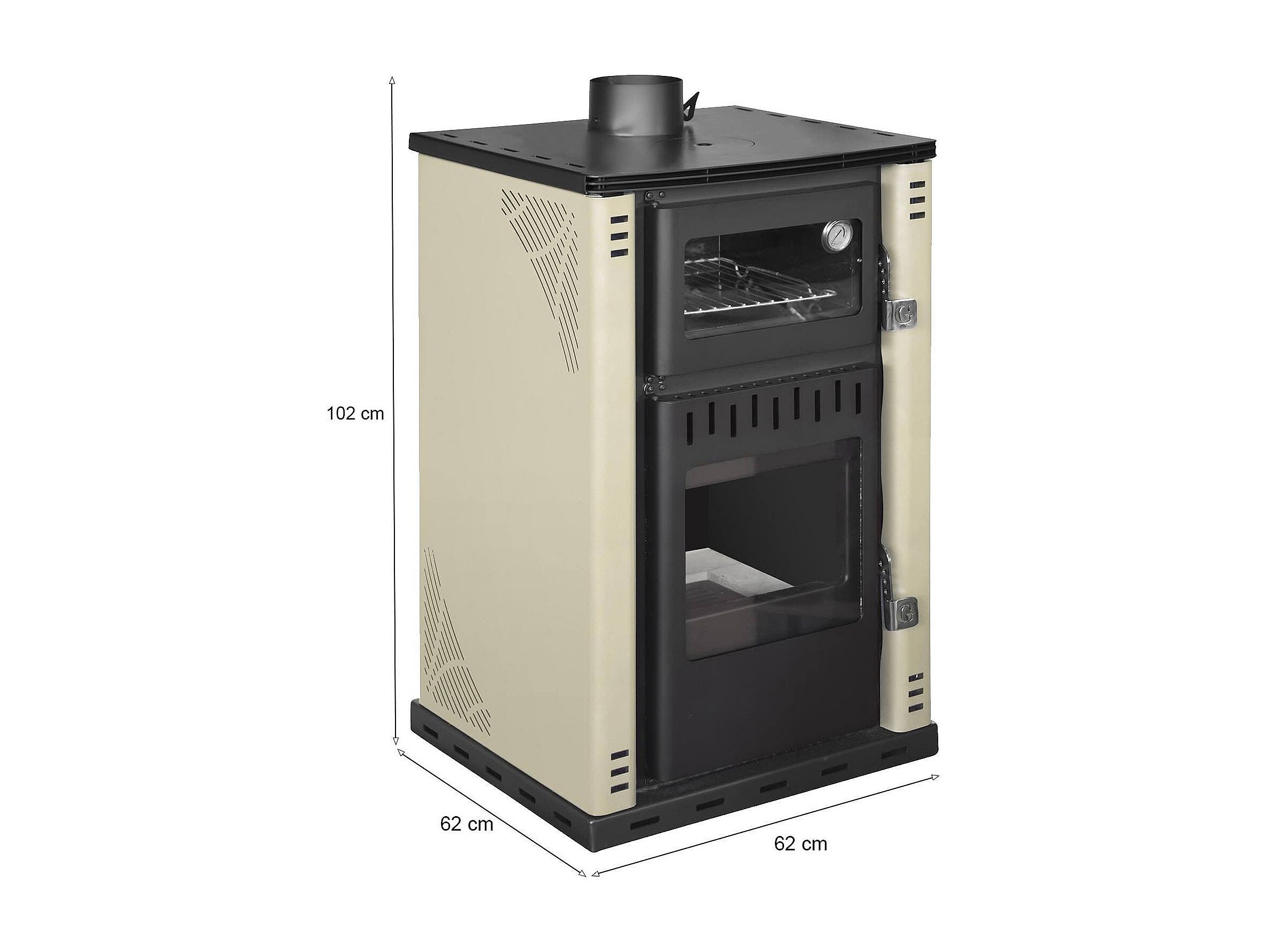 Stufa a Legna Aquino, Volume Riscaldabile 200 m3 Made in Italy, 33x38.5x74h cm Beige