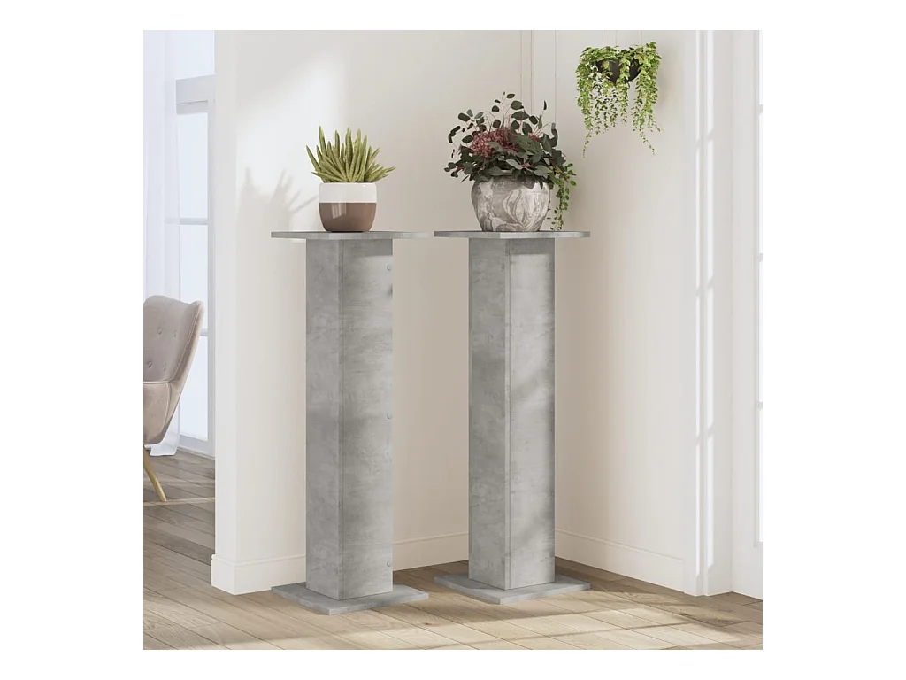 Supporti per piante 2 pezzi in cemento grigio e legno ingegnerizzato