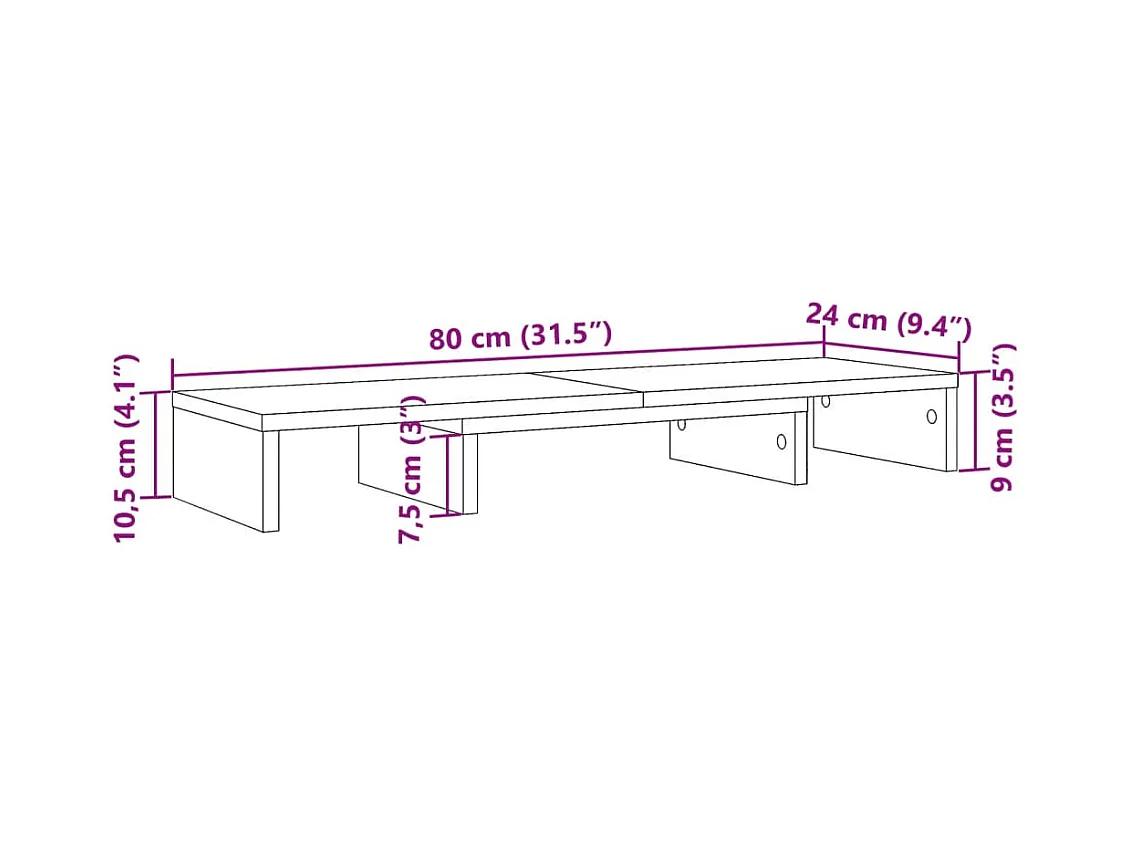 Supporto per monitor Bianco 100x27x15 cm Legno di pino massiccio