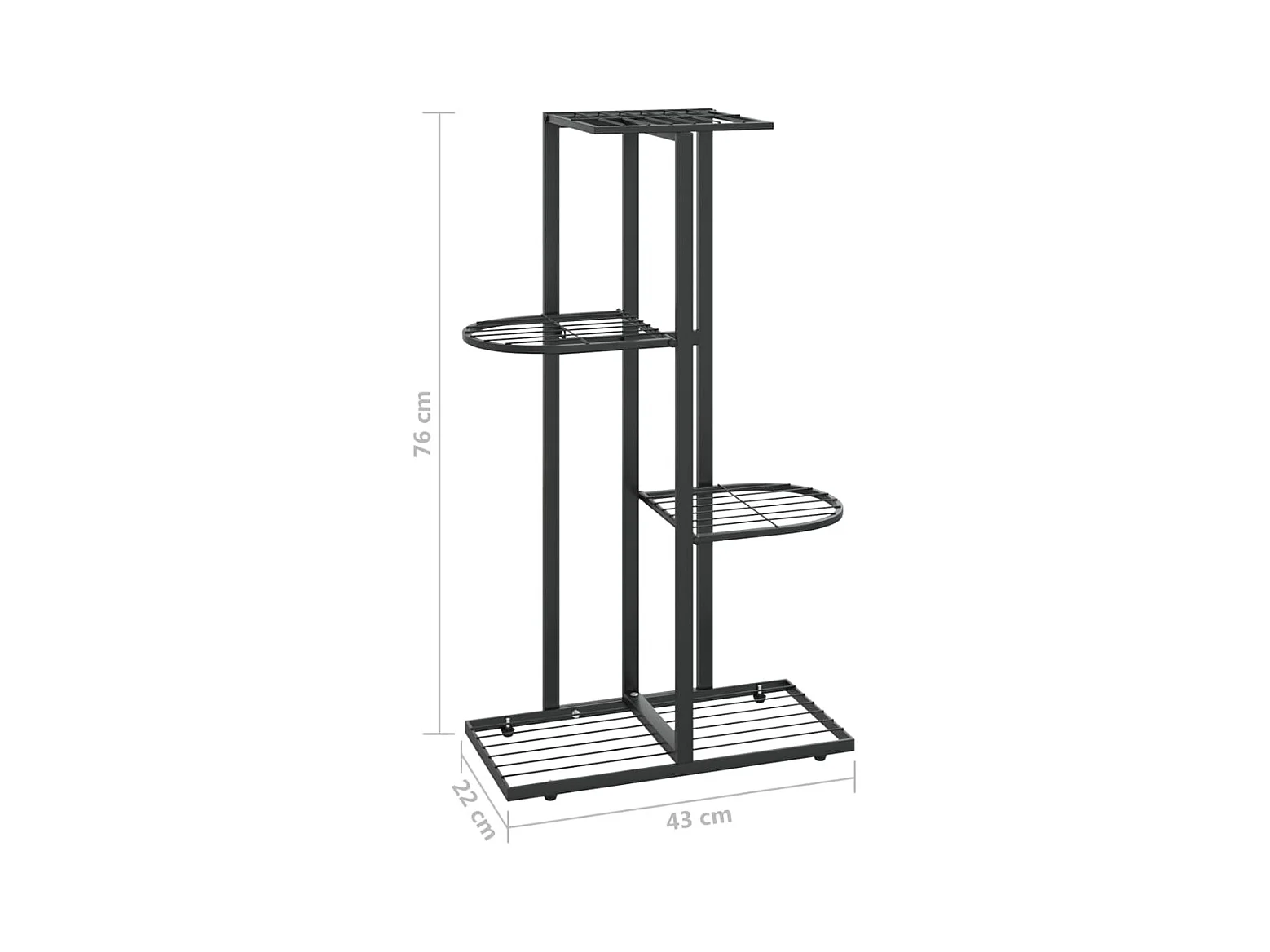 Supporto per piante a 4 ripiani 43x22x76 cm Metallo nero