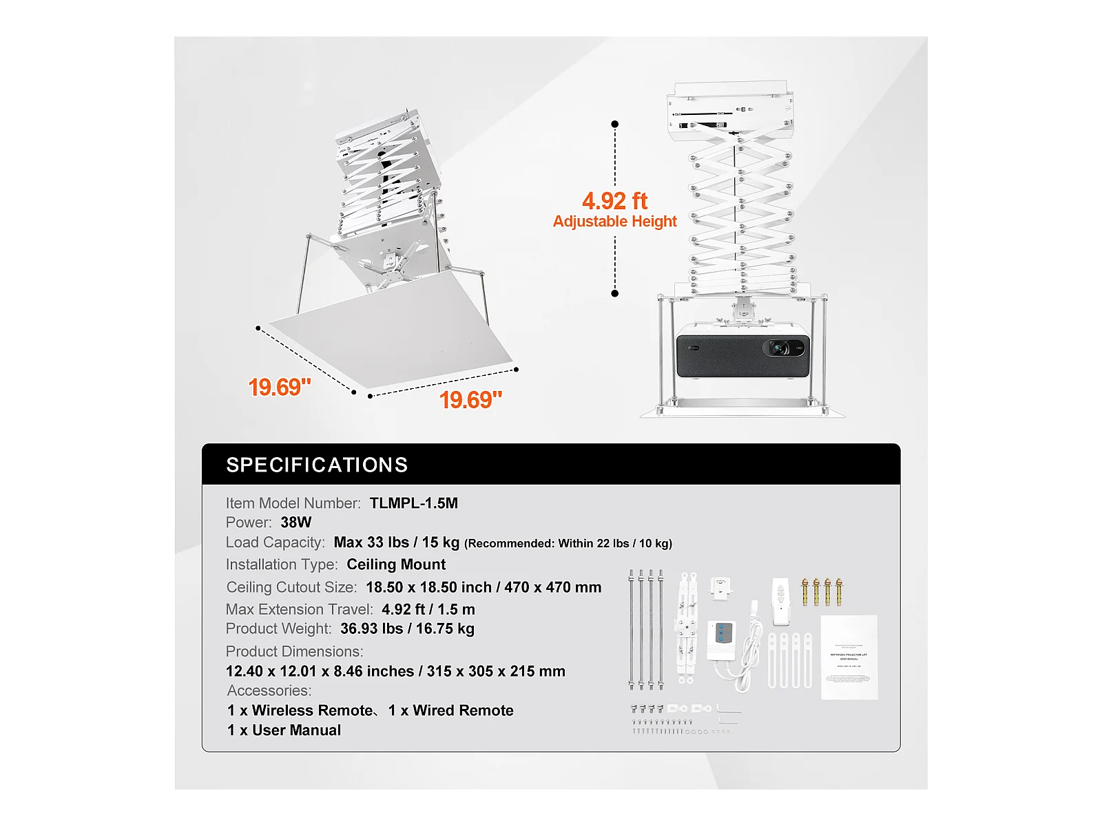 Supporto per Proiettore SucceBuy Supporto per Proiettore Motorizzato, Altezza Regolabile da 150 cm