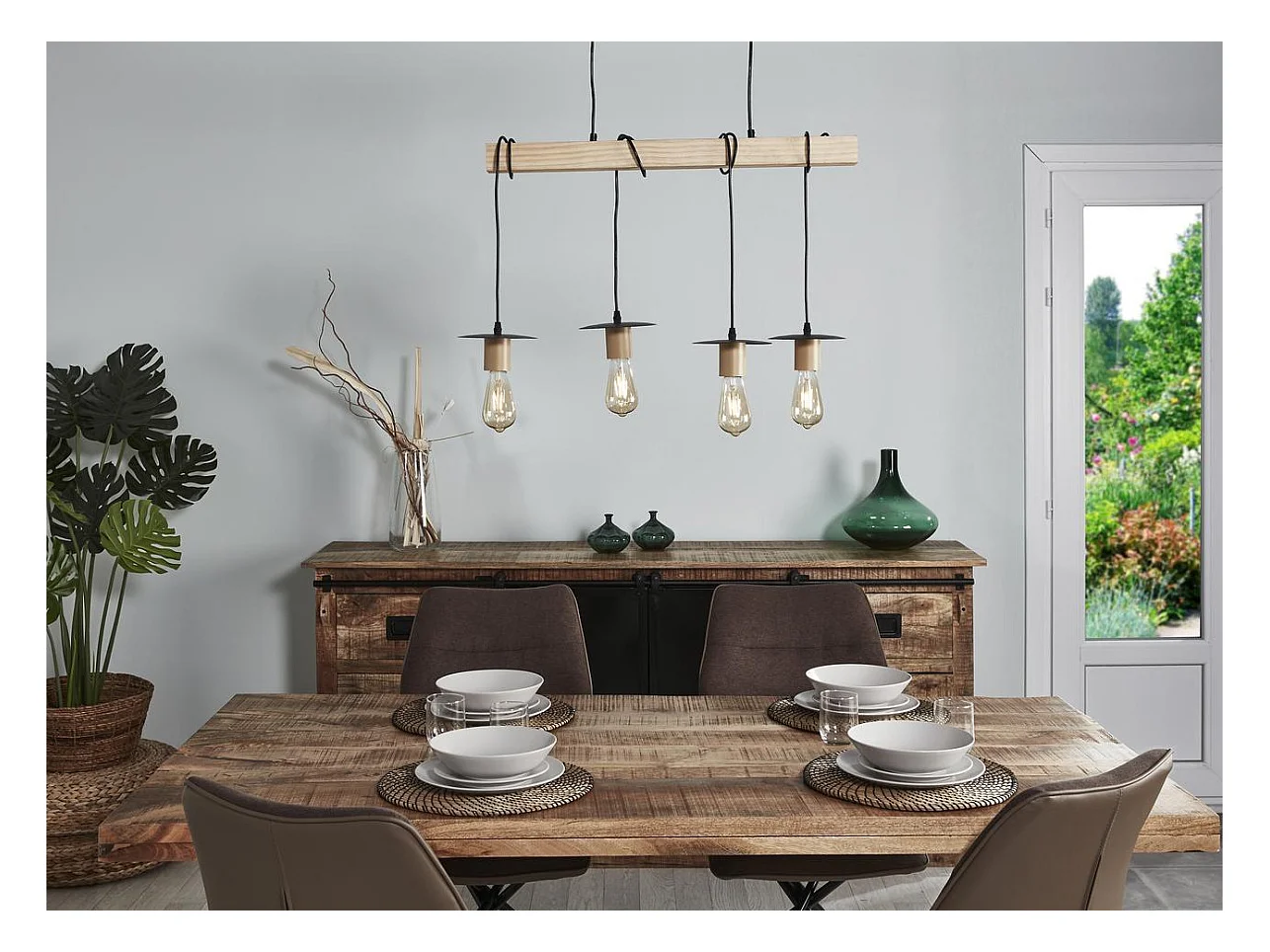 Sospensione Industriale 4 Teste Legno e Metallo Marrone 71cm