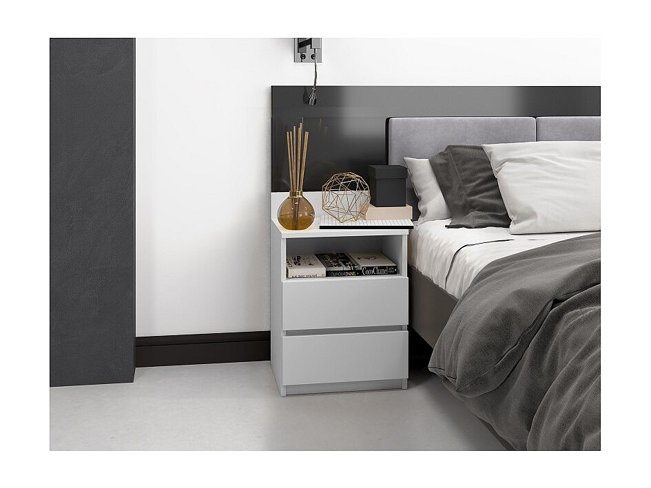 Pau Comodino Bianco Lucido 40x35x50 cm in Legno Multistrato
