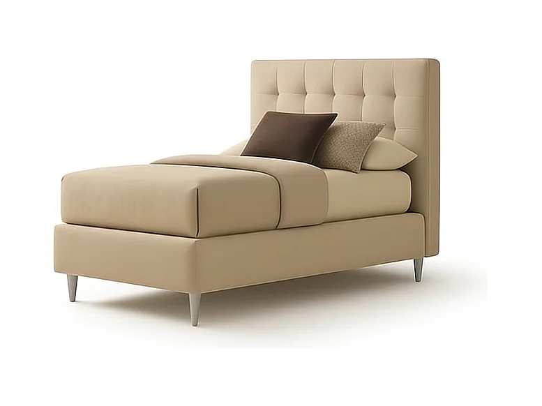 Talia, Letto a Una Piazza E Mezza Con Contenitore Rivestimento Tessuto Idrorepellente Beige (135cm X 225cm X 120cm)| Duzzle