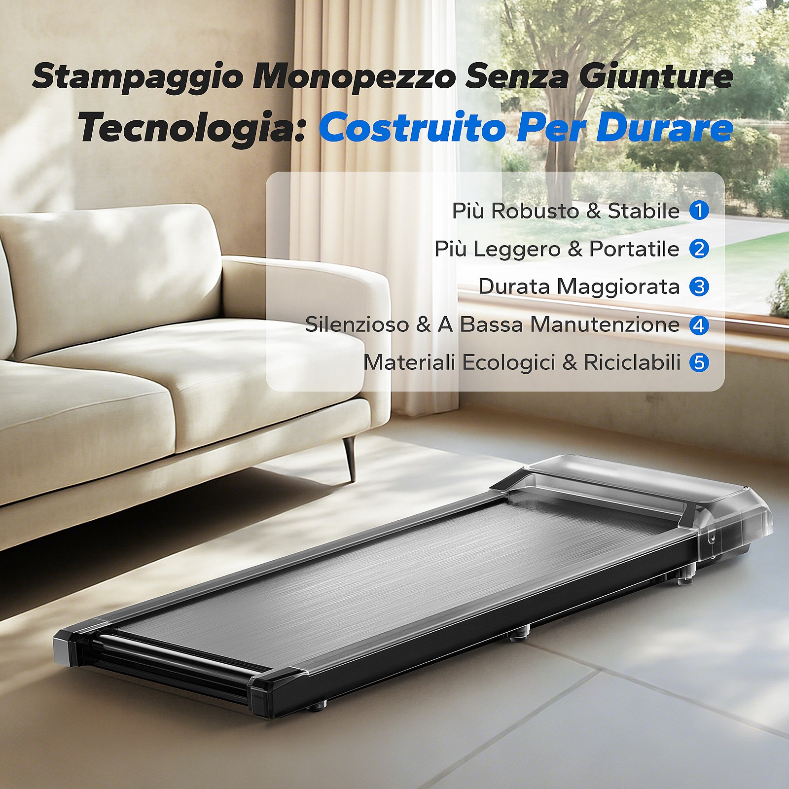 Tapis roulant silenzioso con meno di 50 dB e motore potente da 2,5 HP per un allenamento tranquillo.
