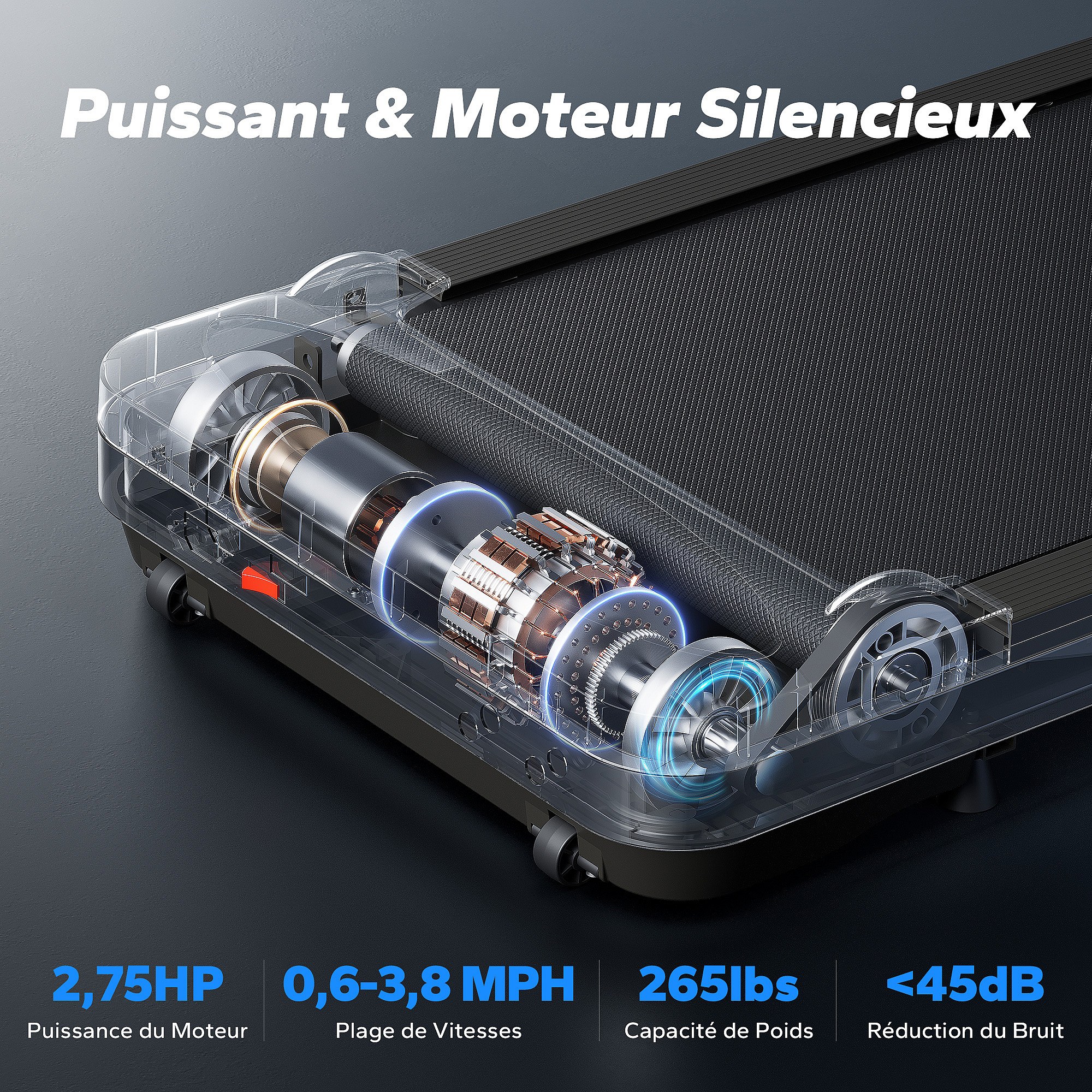 Il tapis roulant 3 in 1 con motore da 2,75 HP combina prestazioni potenti con tecnologia silenziosa e amica delle ginocchia. Grazie ai 6 ammortizzatori in silicone, le tue ginocchia sono protette a ogni passo, mentre la superficie antiscivolo a 5 strati garantisce una presa sicura. Con una capacità massima di 120 kg e un intervallo di velocità da 1 a 6 km/h, il tapis roulant è ideale per una camminata leggera fino a una corsa attiva.