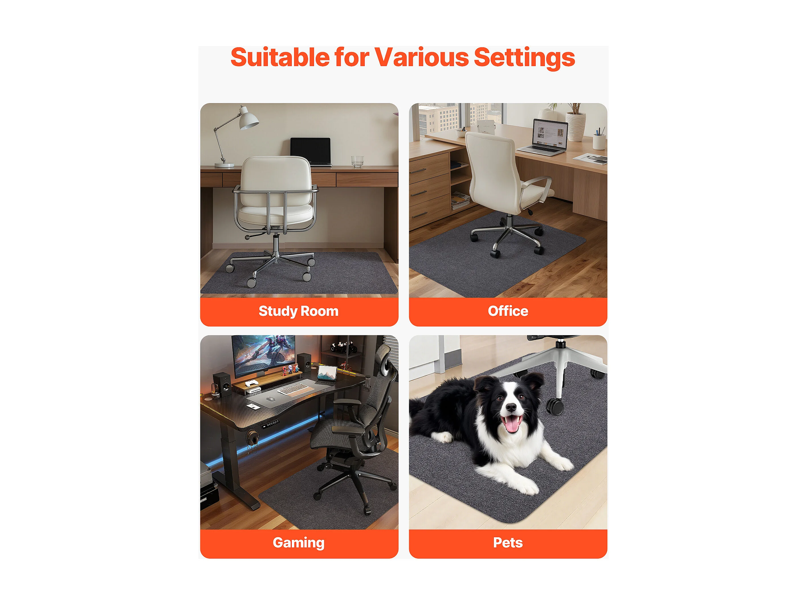 Tappetino Sedia Ufficio SucceBuy di 121,9x91,4 cm, Tappetino di Protezione per Sedie con Rotelle, Protettore per Pavimento Duro con Superficie in Velluto a Coste