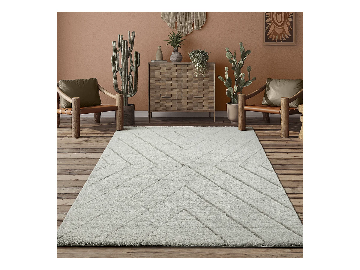 Tappeto Bahar Shaggy motivo triangoli, crema, 120 x 170 cm