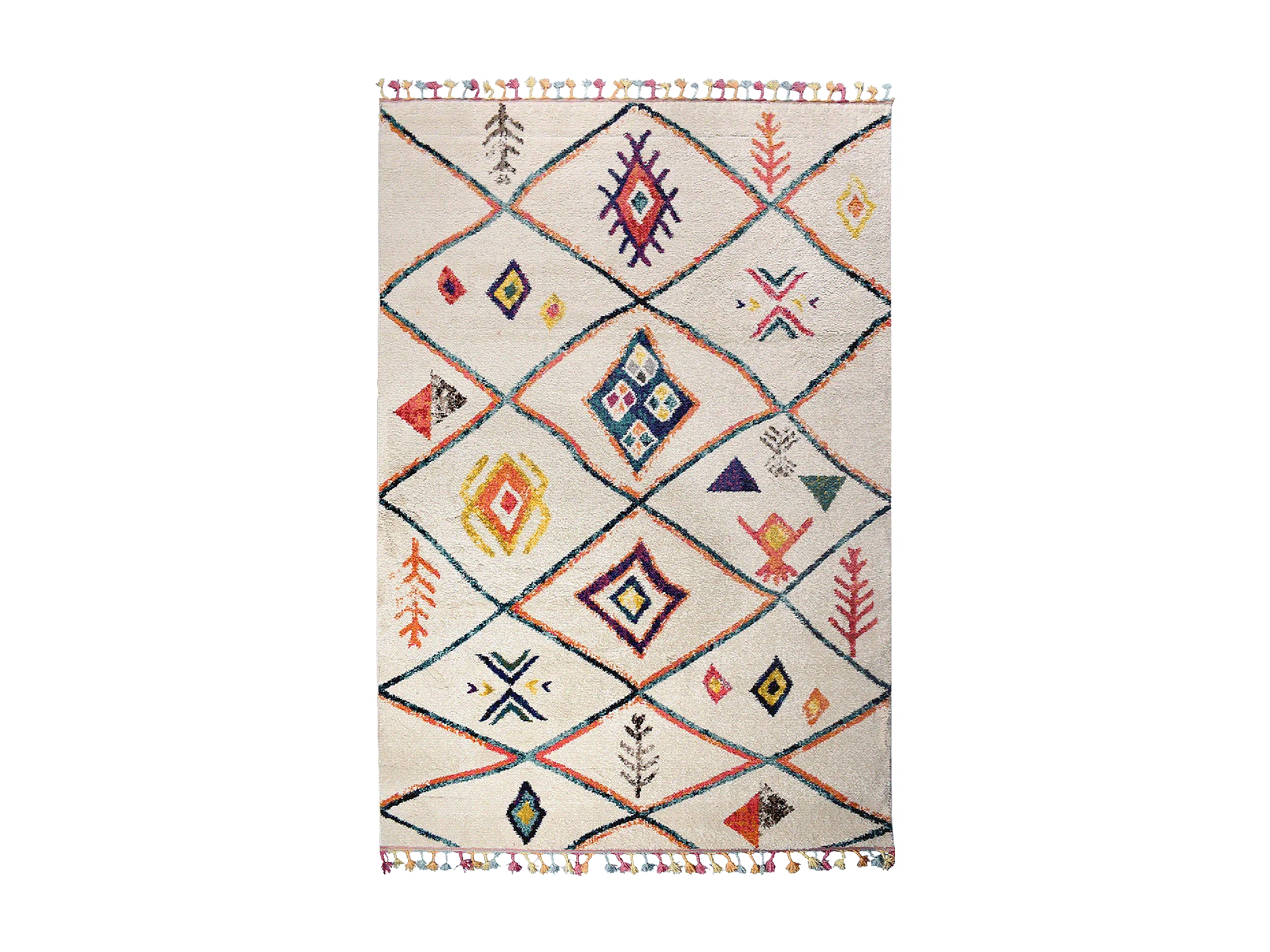 Tappeto berbero 200x290 motivi tribali intrecciati OURIKA beige e rosso