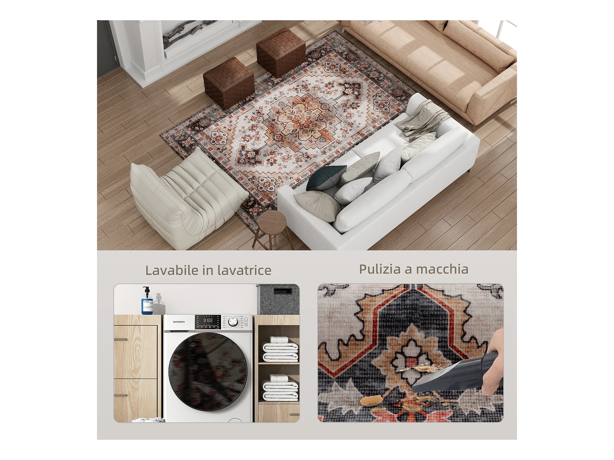 Tappeto boho a pelo corto antiscivolo e lavabile 230x160 cm marrone