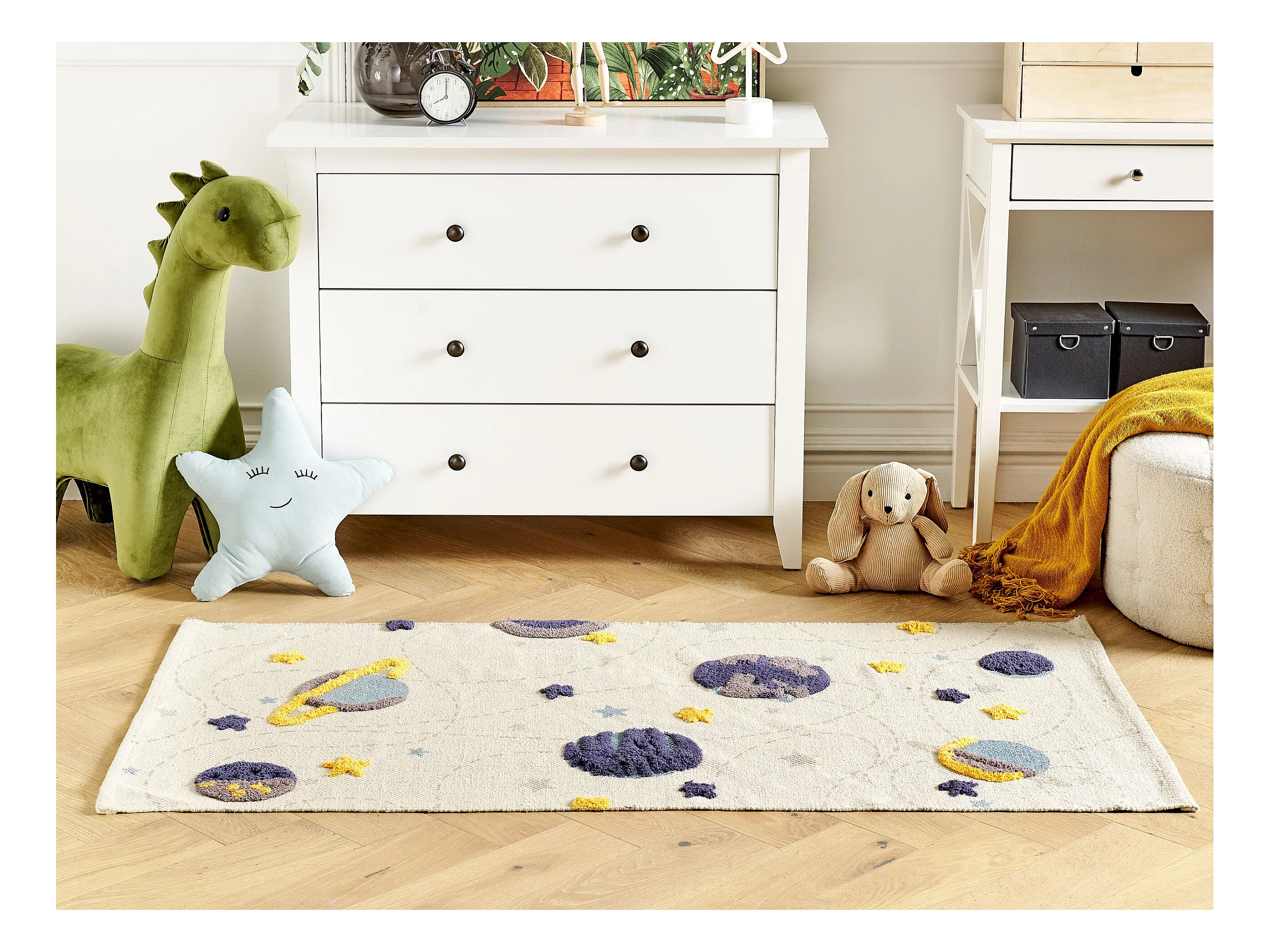 Tappeto per bambini cotone beige motivo dinosauro 140 x 200 cm GHARTA