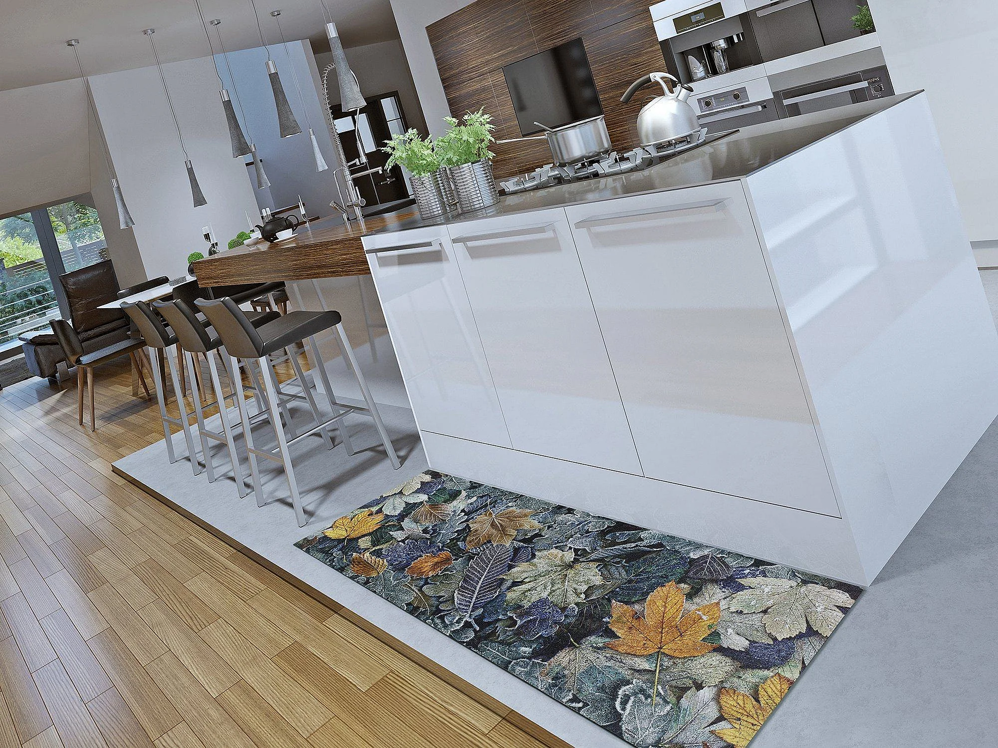 Tappeto da cucina - disegni con foglie - blu - 52 x 200 cm - RICCI