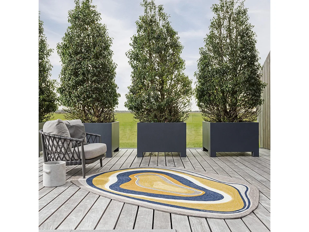 Tappeto da esterno 140x200 tessuto kilim blu e grigio AURA