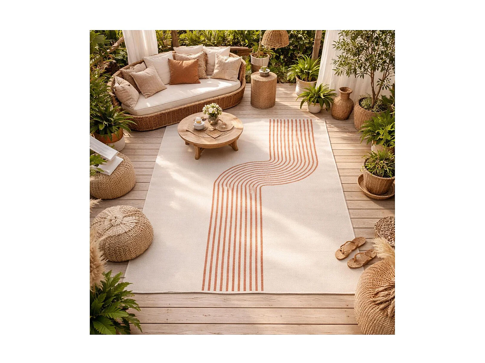 Tappeto da esterno, kilim reversibile 200x290 RUO REVERSIBILE terracotta e panna