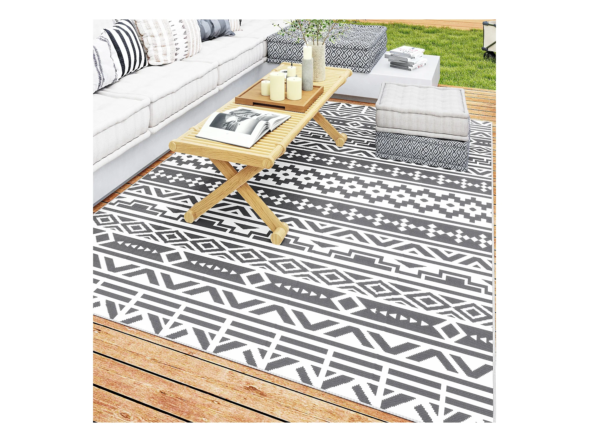 Tappeto da esterno reversibile con borsa 1.8x2.7cm grigio e bianco