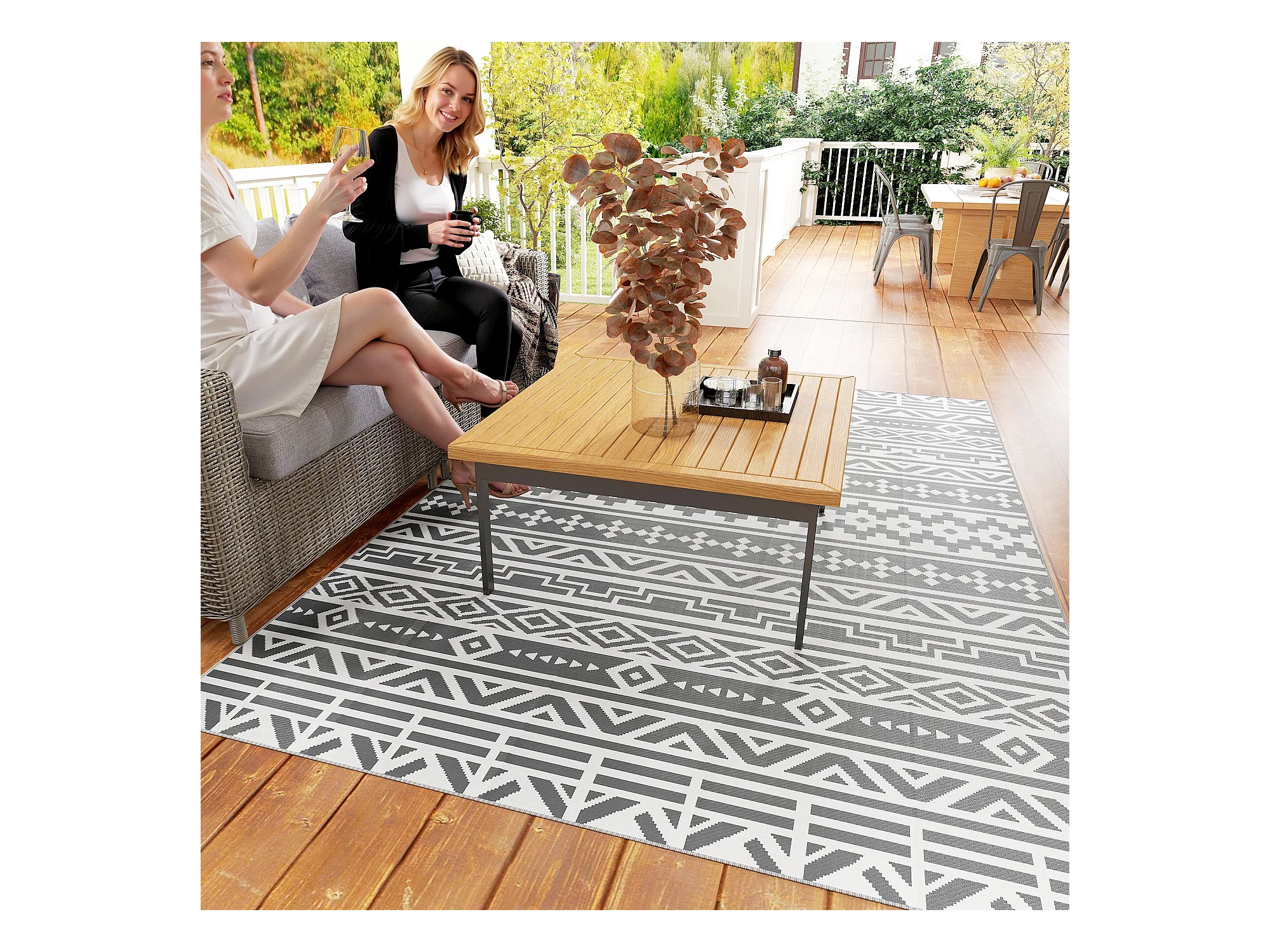 Tappeto esterno reversibile fantasia geometrica 1.8x1.2m grigio