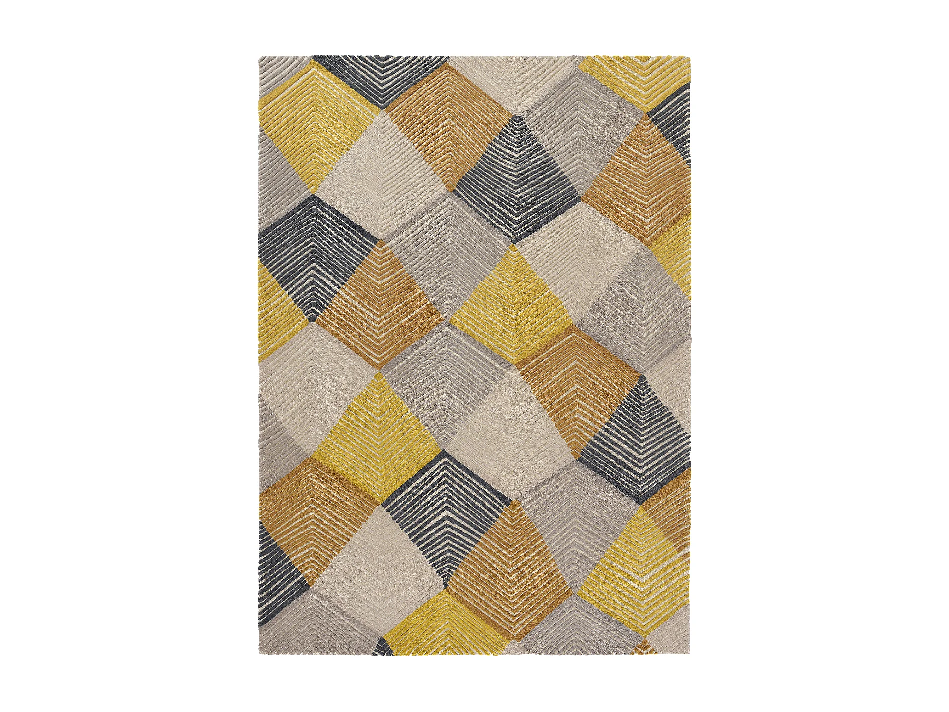 tappeto da ingresso 140x200 realizzato a mano in lana gialla e grigia fantasia geometrica