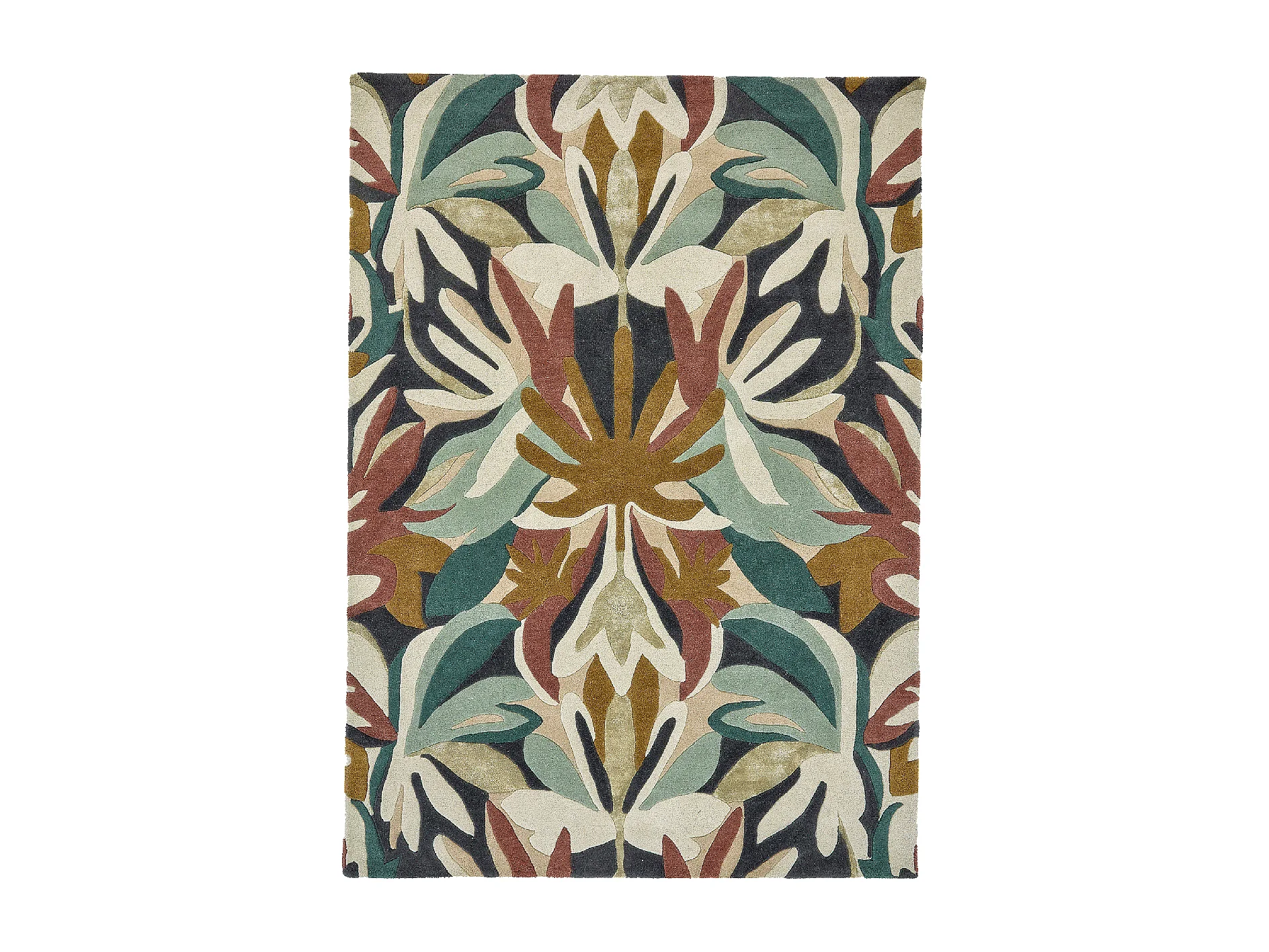 tappeto da ingresso 140x200 realizzato a mano in lana verde e beige fantasia floreale