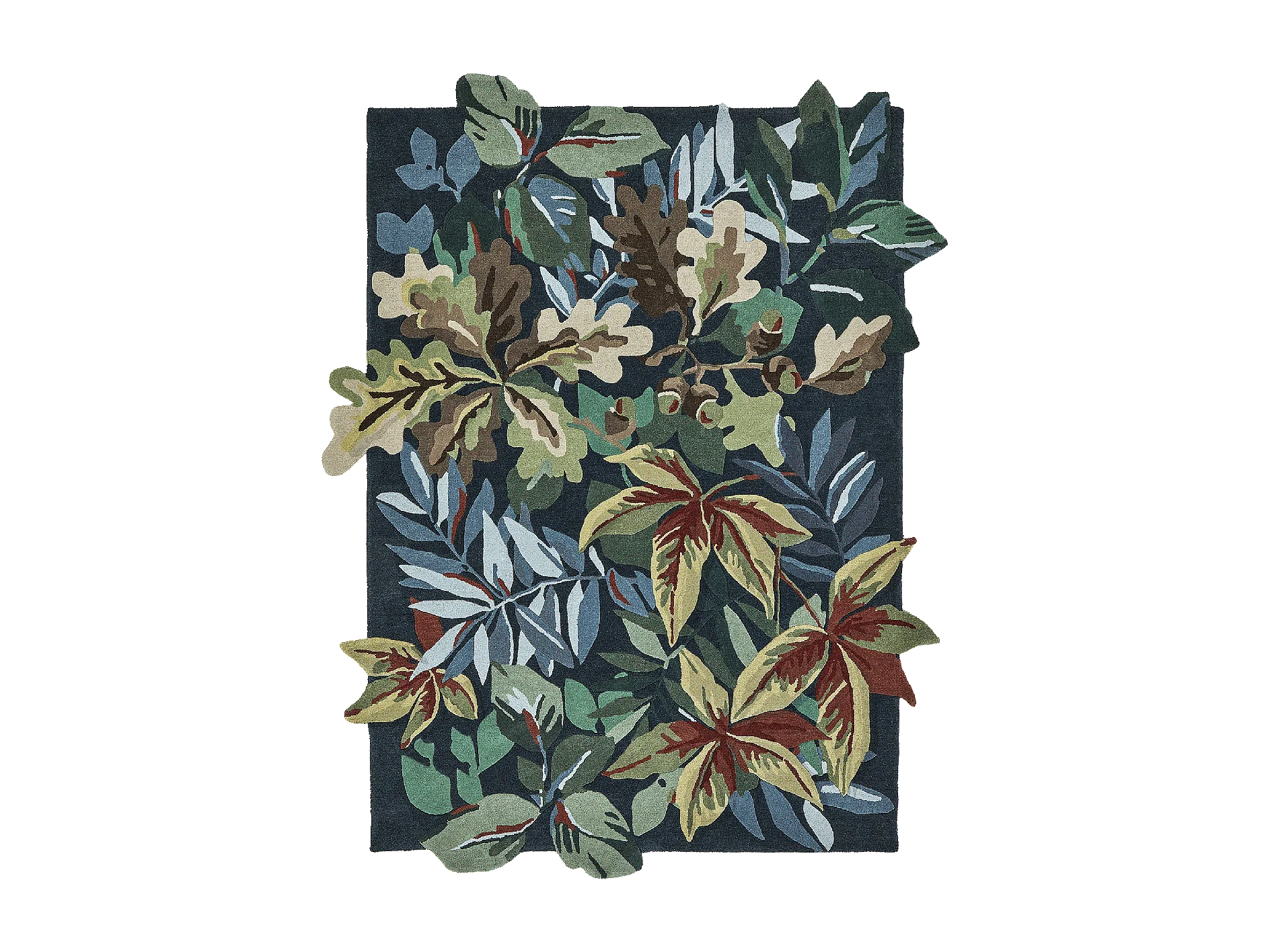 tappeto da ingresso 140x200 realizzato a mano in lana verde e blu con motivo floreale rettangolare