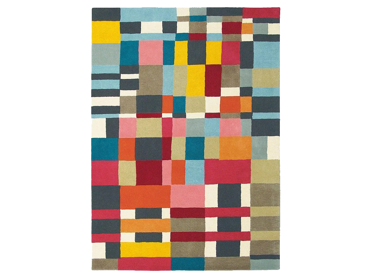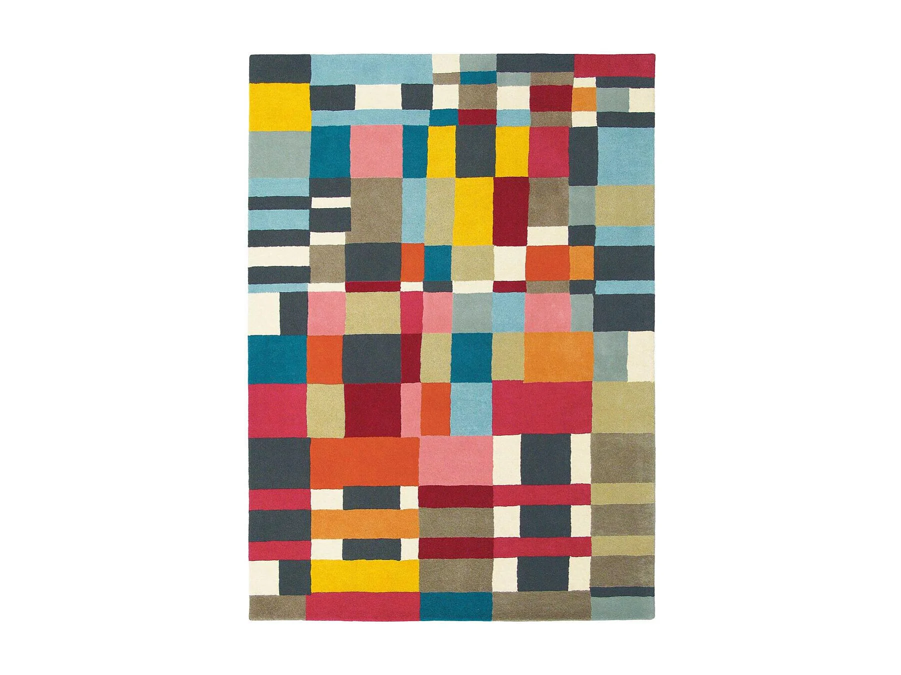 tappeto da ingresso 140x200 tessuto in lana rossa e gialla con motivo geometrico rettangolare