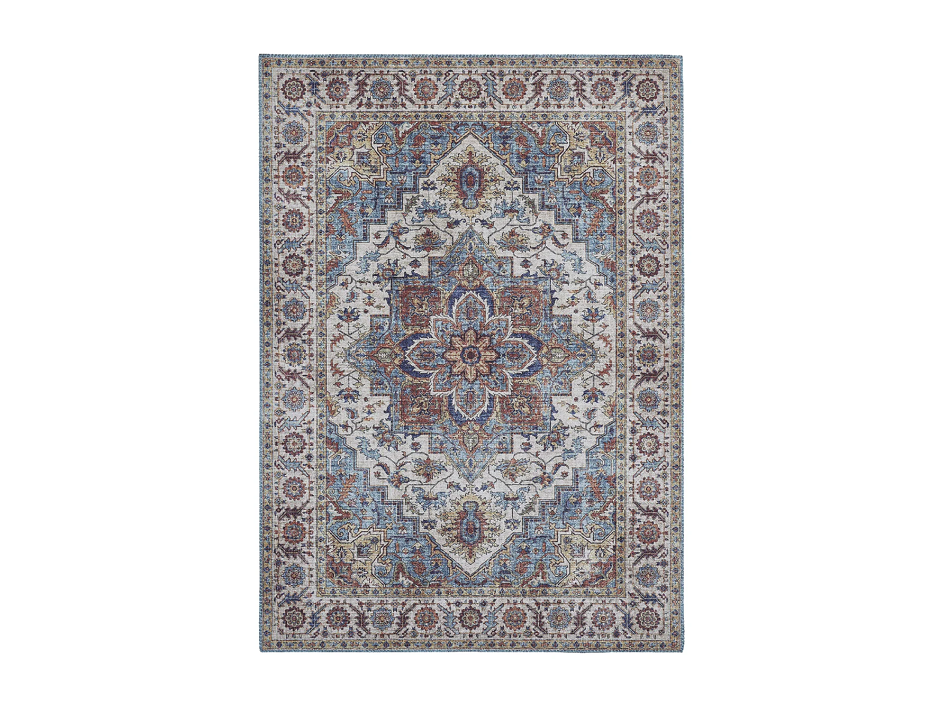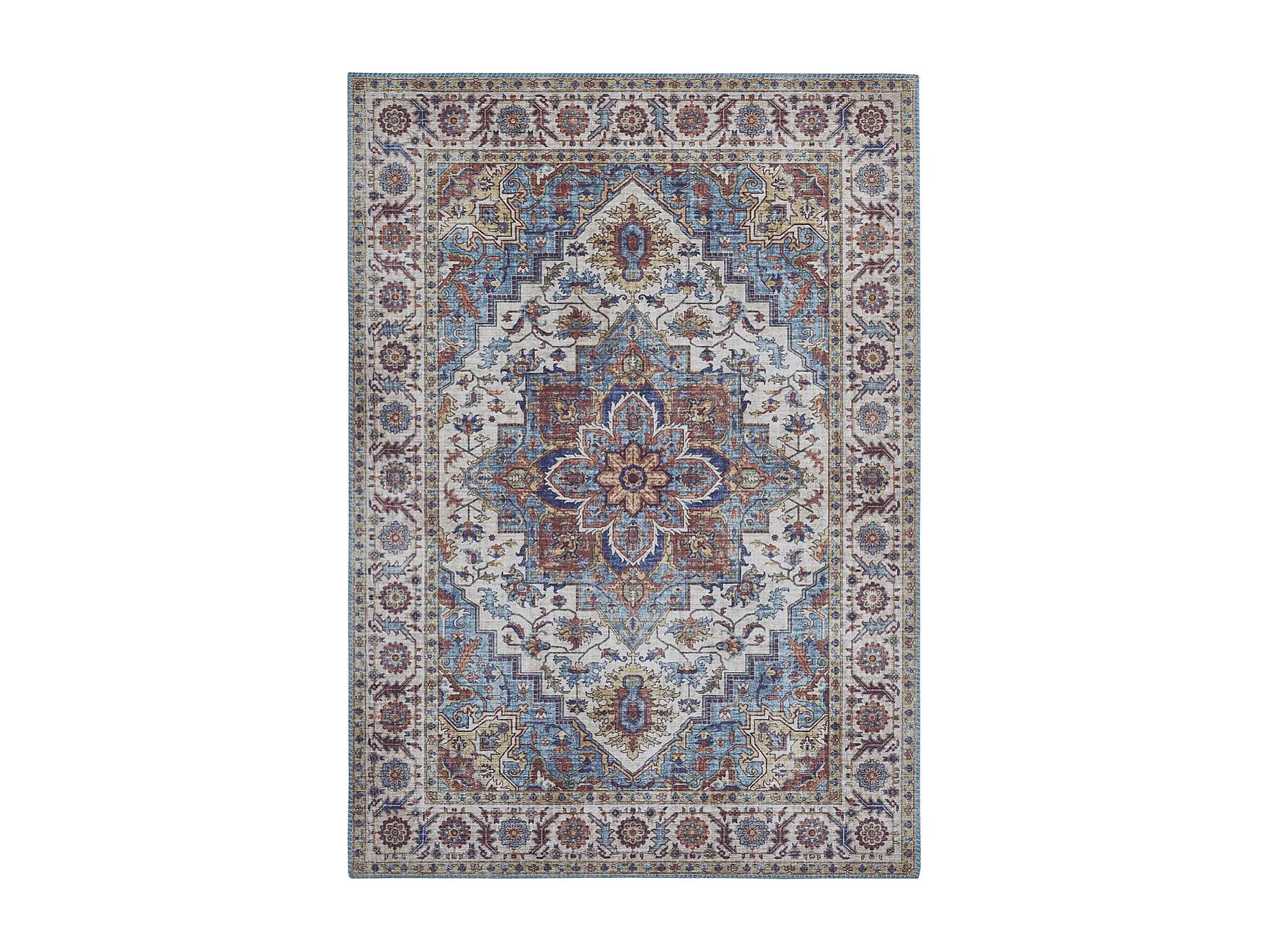 tappeto da soggiorno 160x230 tessuto rettangolare blu e bianco motivo orientale NIKEL