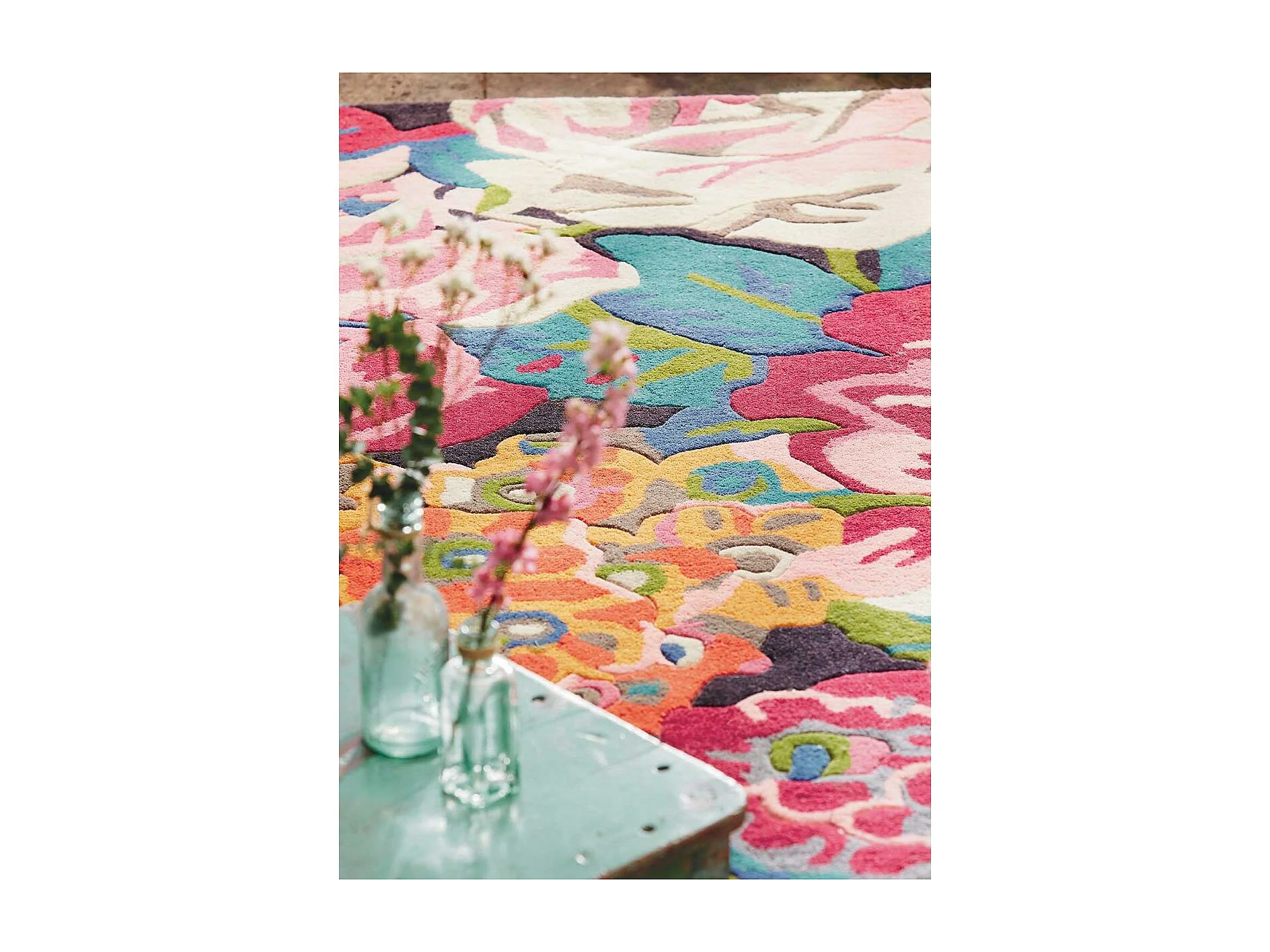 Tappeto da soggiorno e camera da letto fatto a mano in lana con motivo floreale PEONIA
