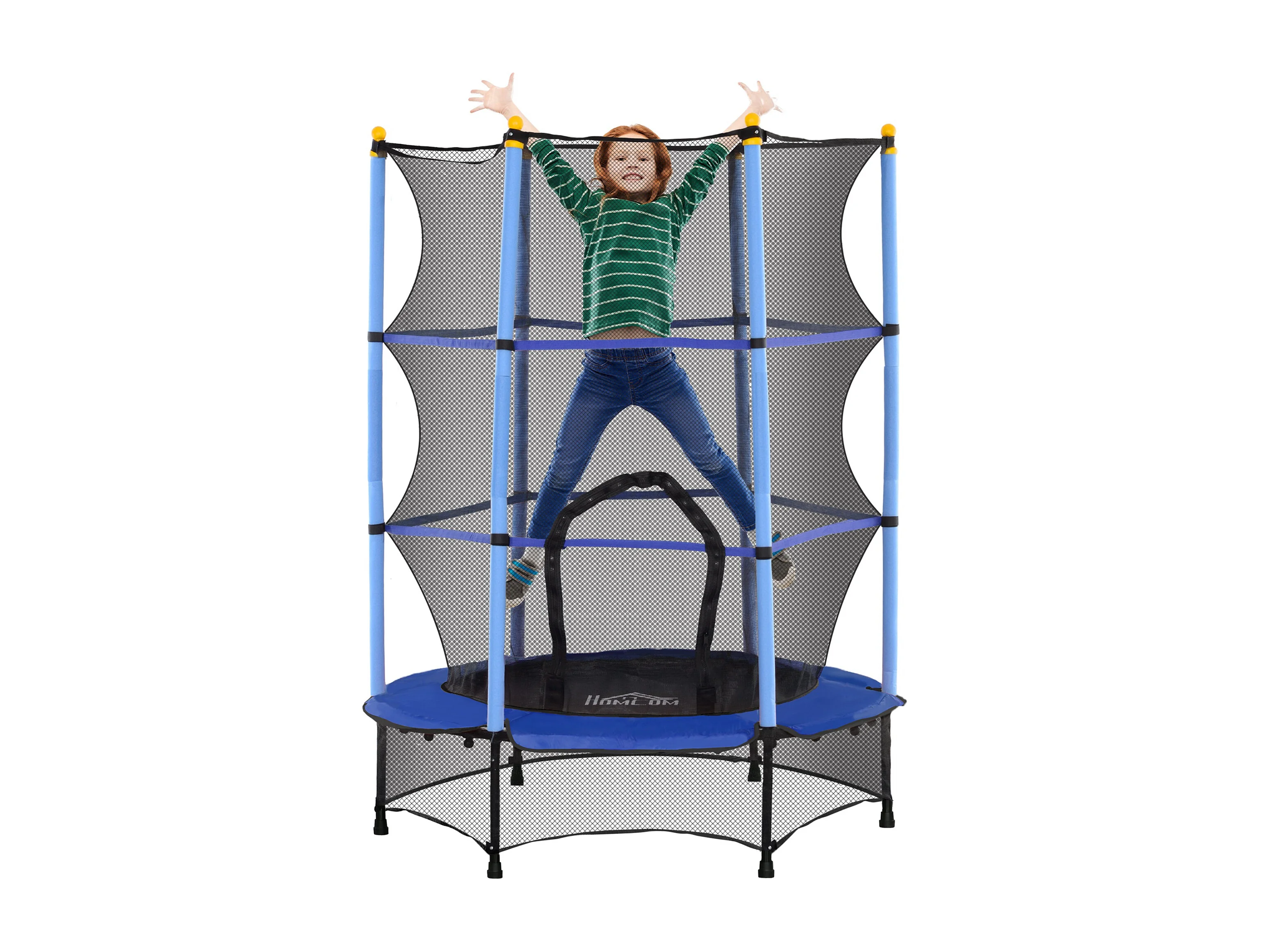 Trampolino elastico per bambini con rete di sicurezza blu