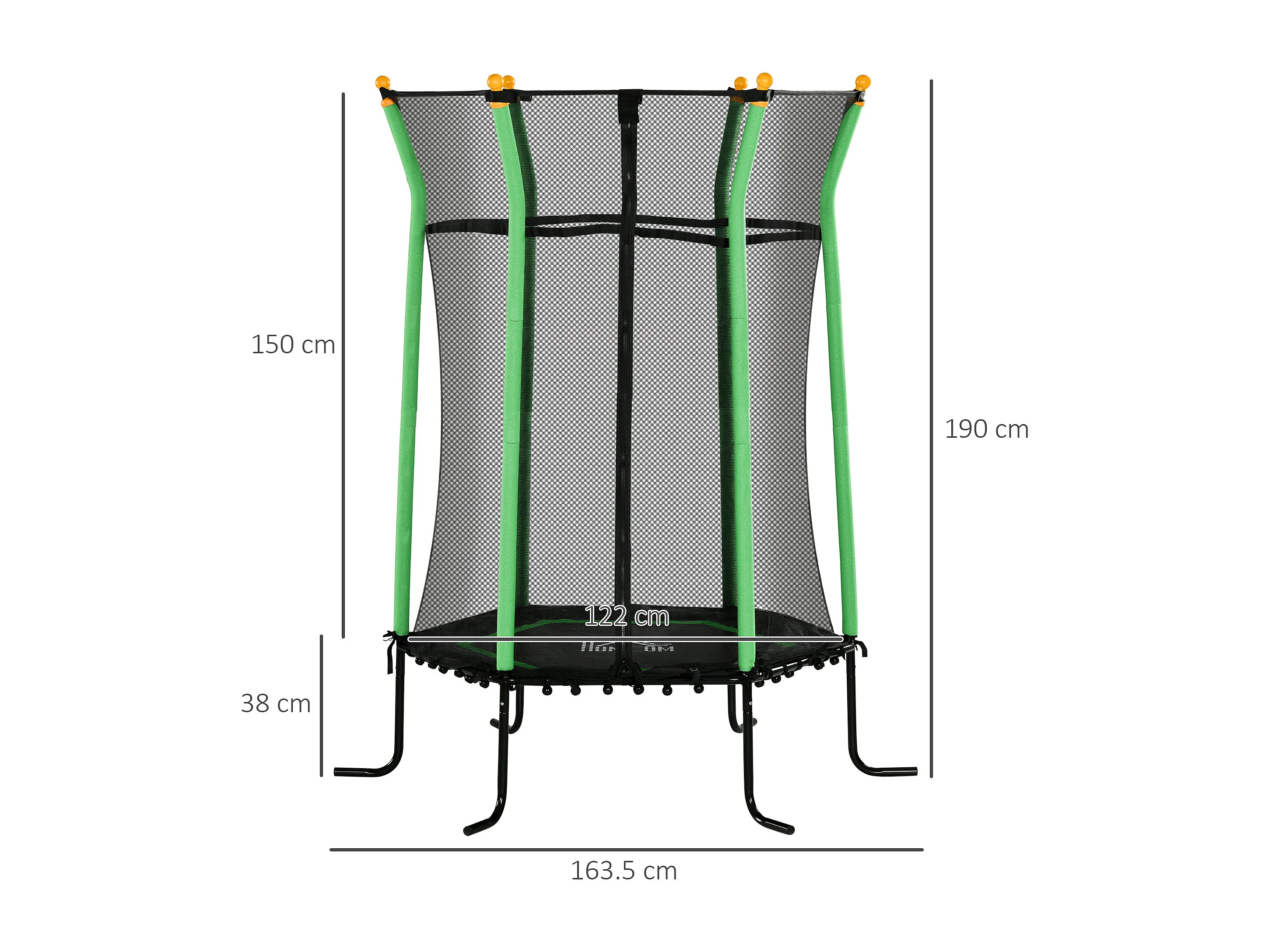 Tappeto elastico per bambini con rete di sicurezza età 3-6 anni verde