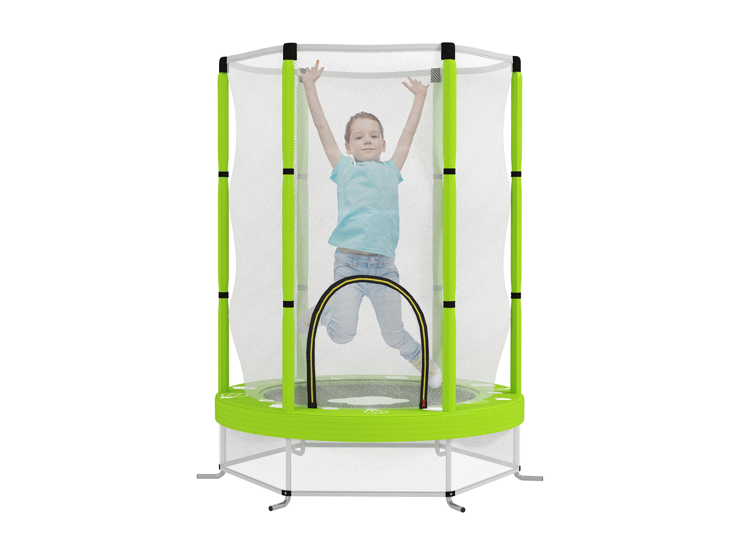 Tappeto elastico per bambini con ingresso a zip e pali imbottiti verde