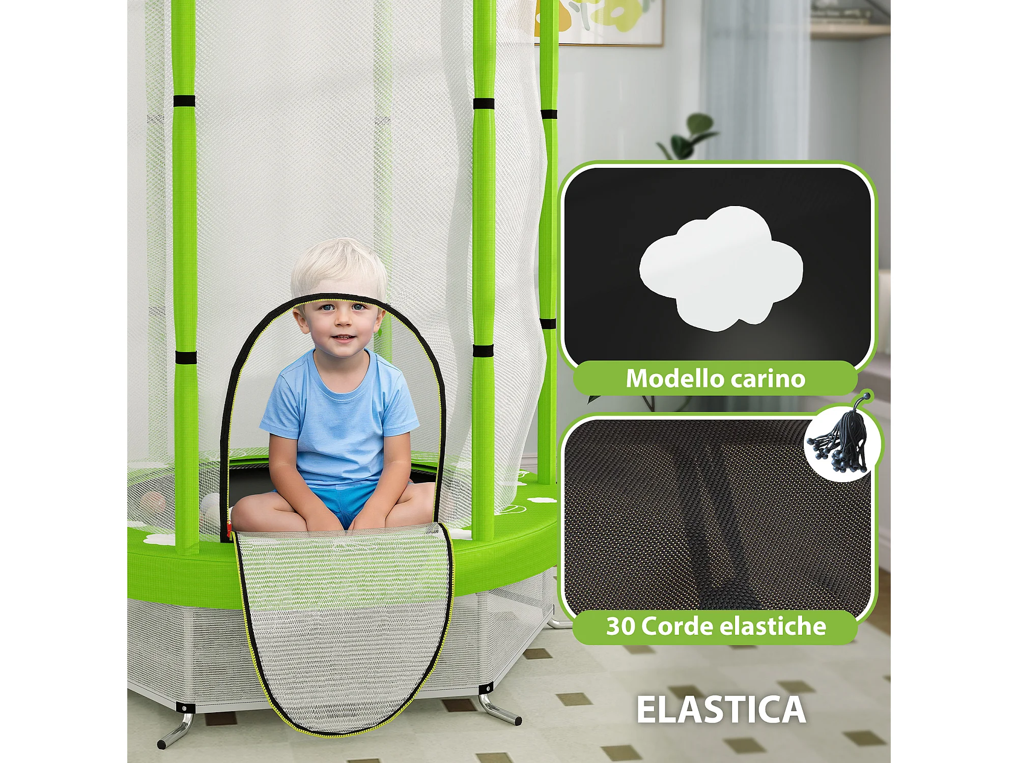 Tappeto elastico per bambini con rete di sicurezza età 3-6 anni verde