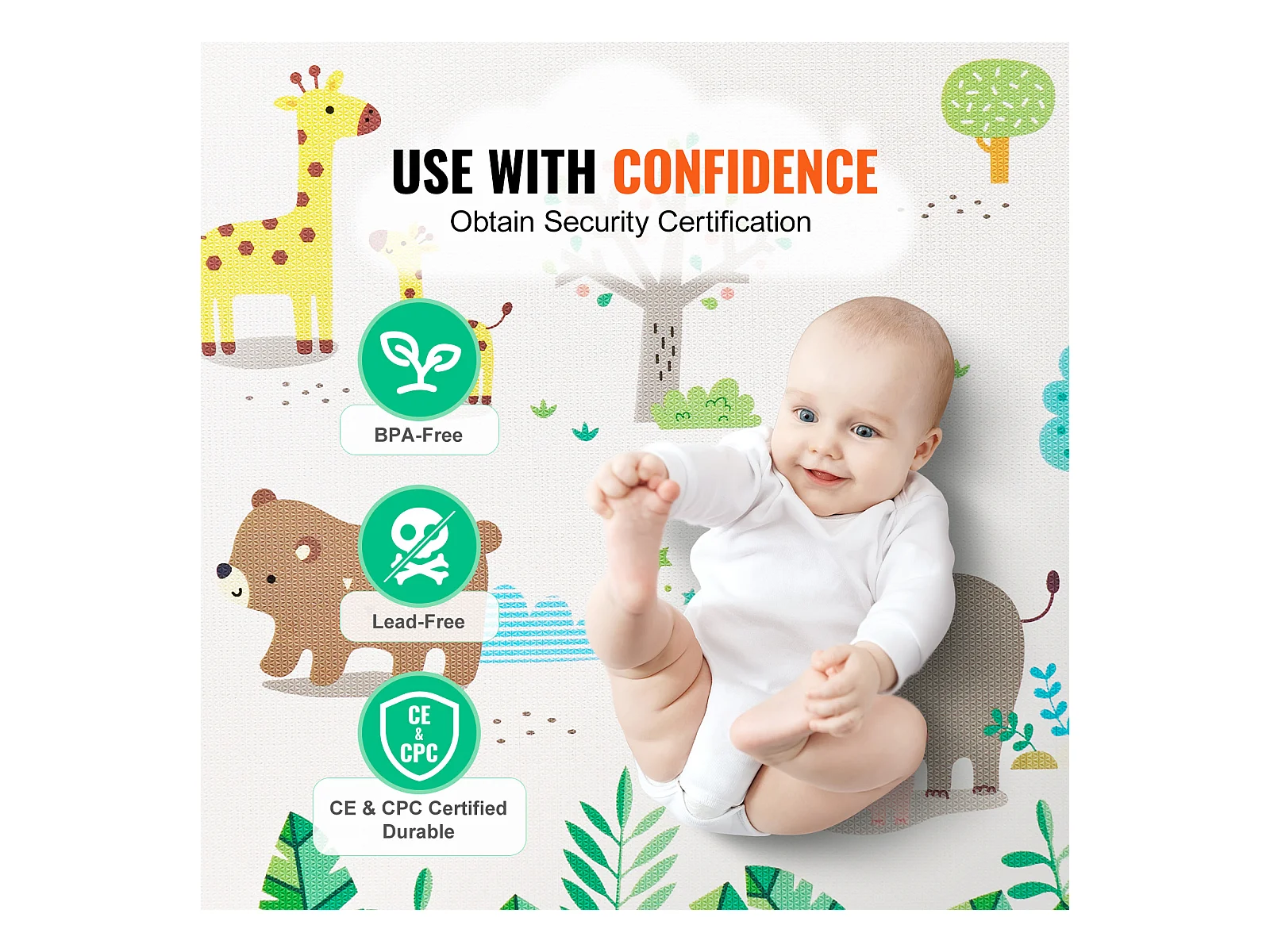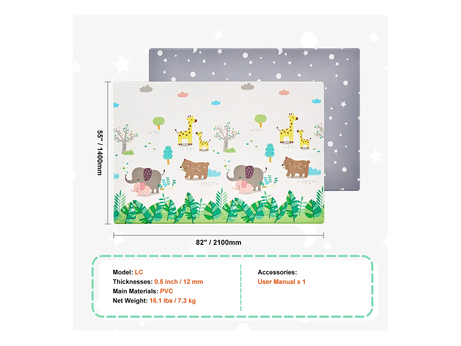 Tappeto Gioco per Neonati, SucceBuy Tappeto Gioco per Neonati 140 × 210 cm, Morbido con Superficie per Gattonamento su 2 Lati