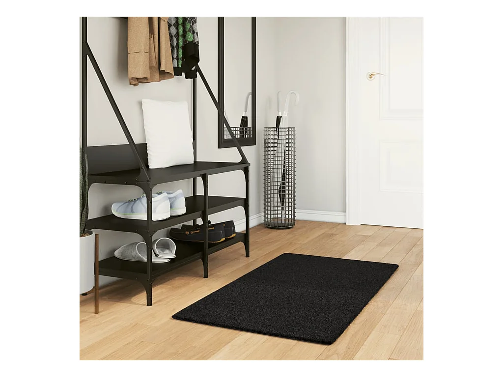 Tappeto HUARTE morbido e lavabile a pelo corto nero 60x110 cm