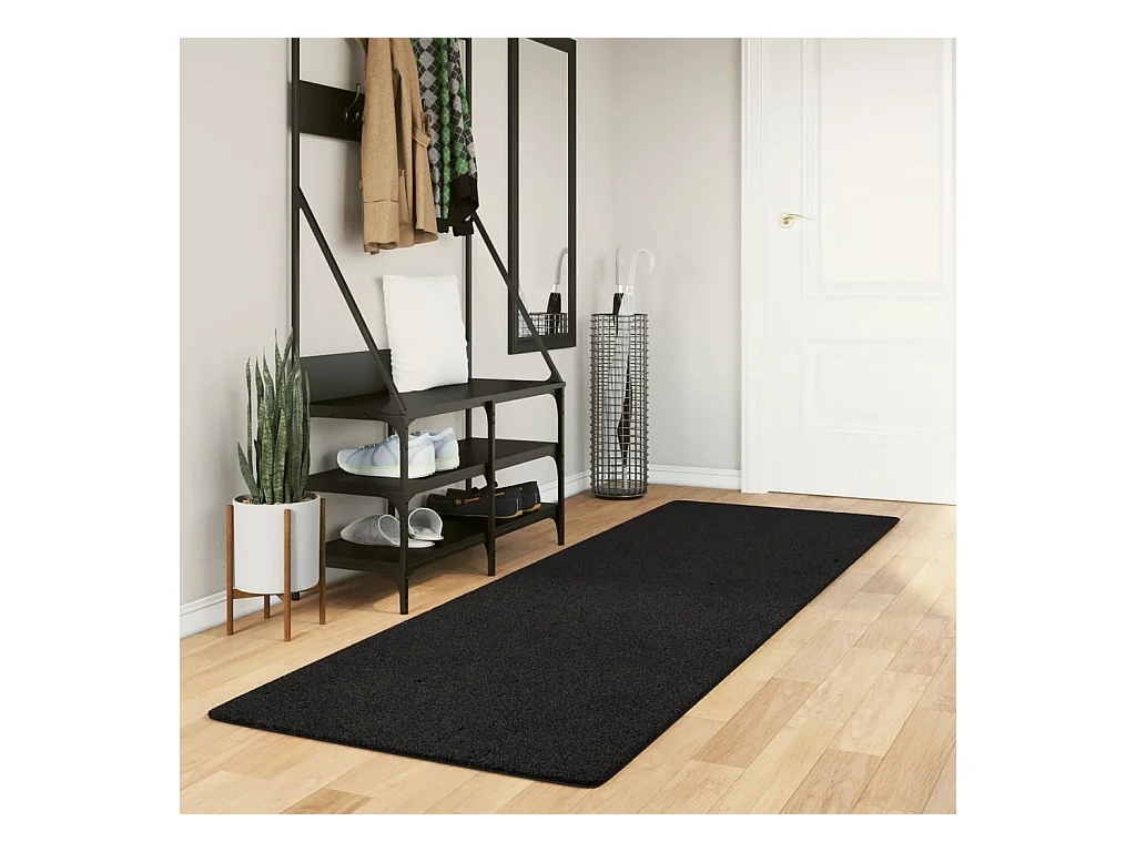 Tappeto HUARTE morbido e lavabile a pelo corto nero 80x250 cm
