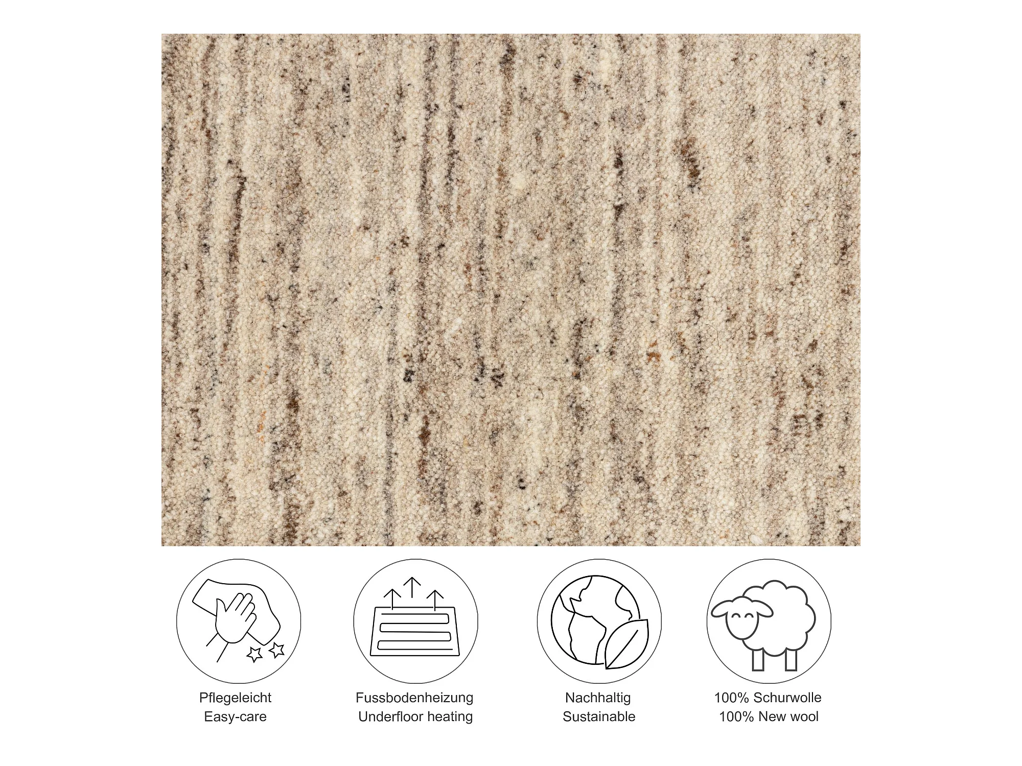 Tappeto in lana reversibile tessuto a mano 120x180 cm Natura Alpen