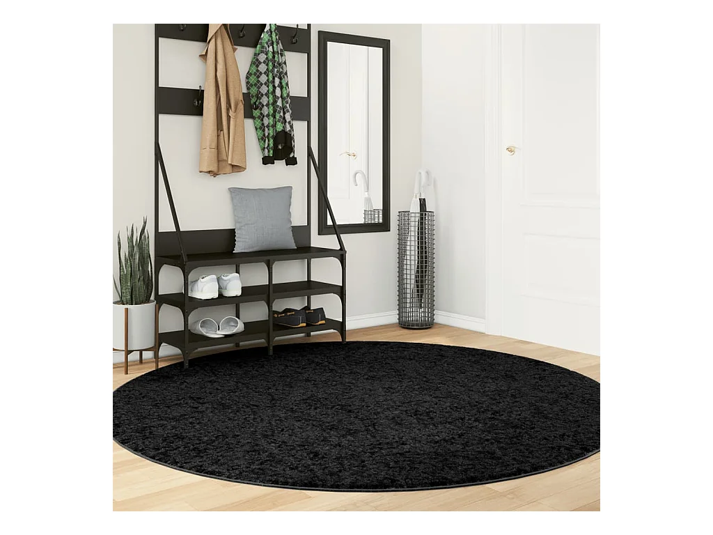 Tappeto HUARTE morbido e lavabile a pelo corto in nero Ø 120 cm