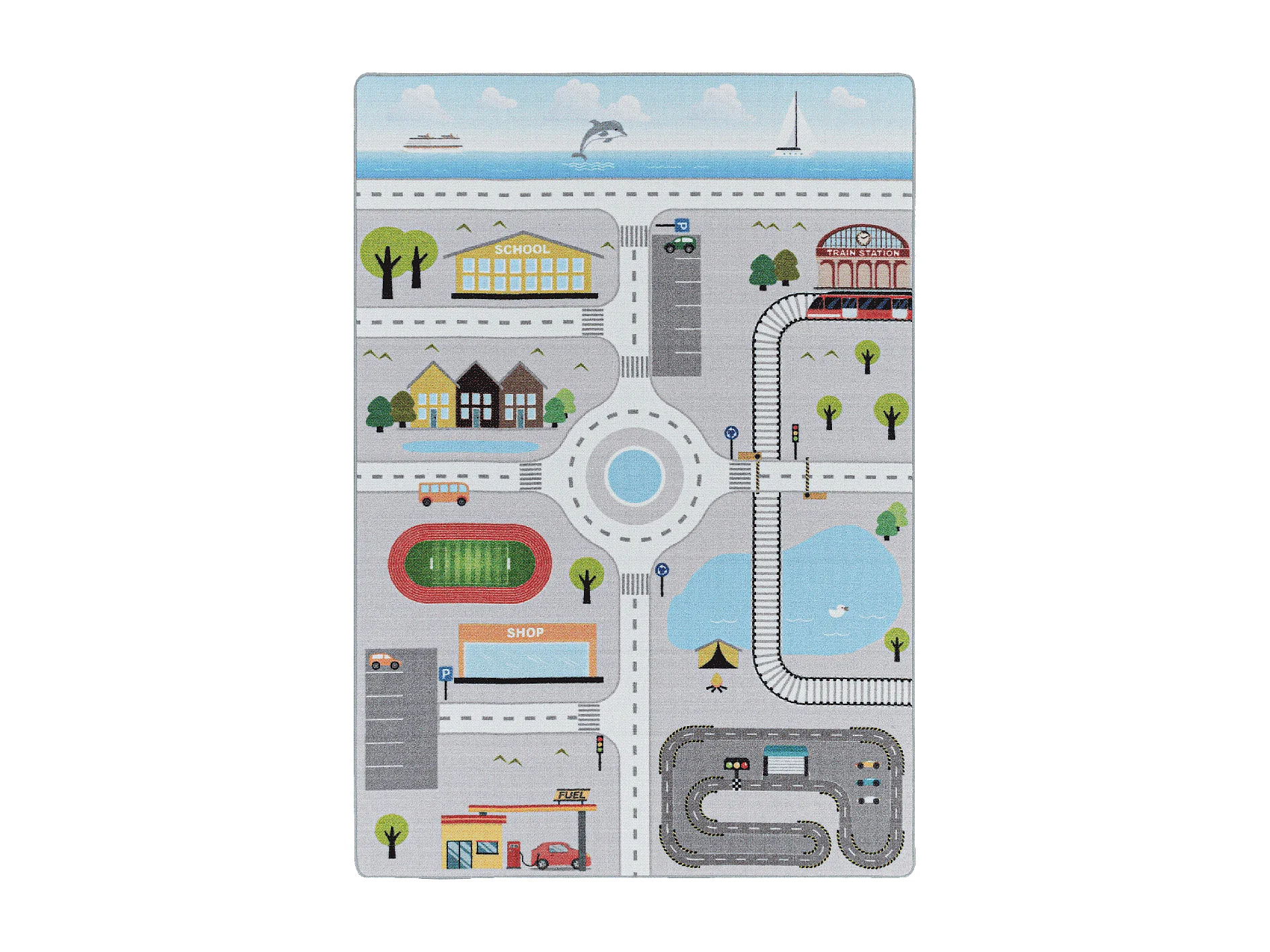 Tappeto per bambini 100x150 lavabile 30° CIRPLAY grigio e blu