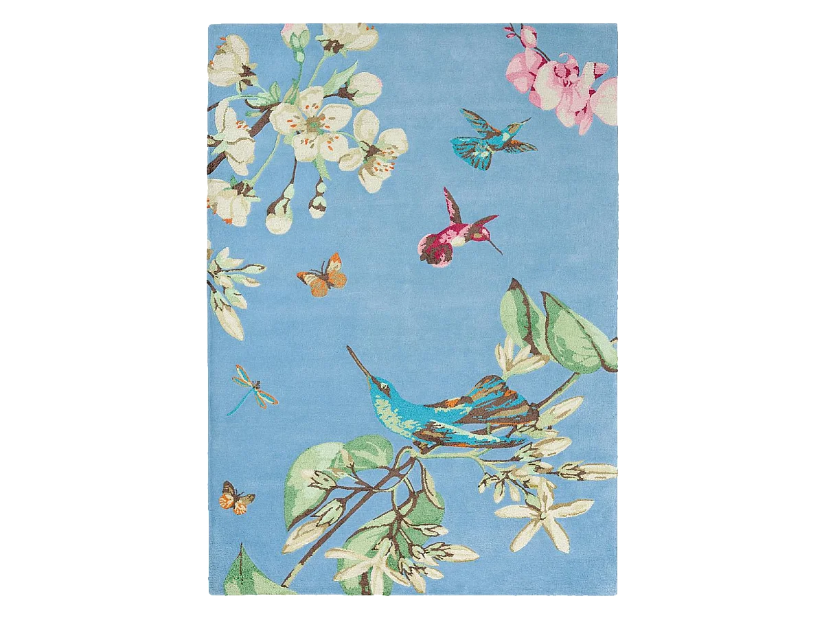 tappeto per camera da letto 120x180 realizzato a mano in lana blu e rossa a fantasia floreale
