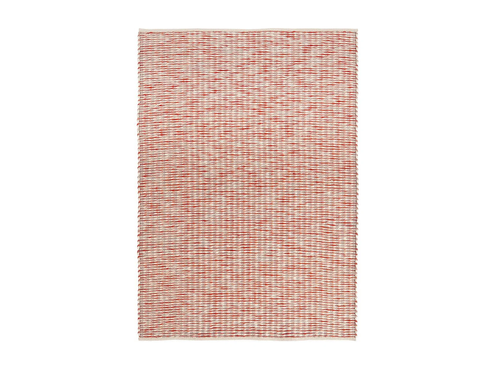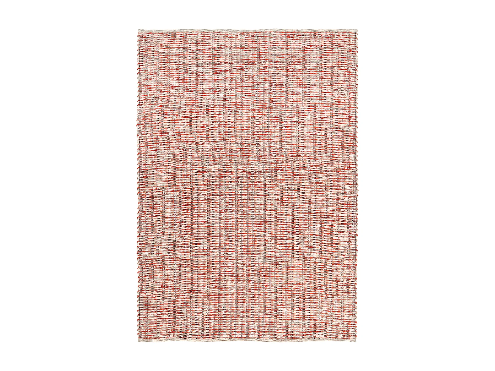 tappeto per camera da letto 140x200 realizzato a mano in lana color panna e rosso, fantasia rettangolare finta unita