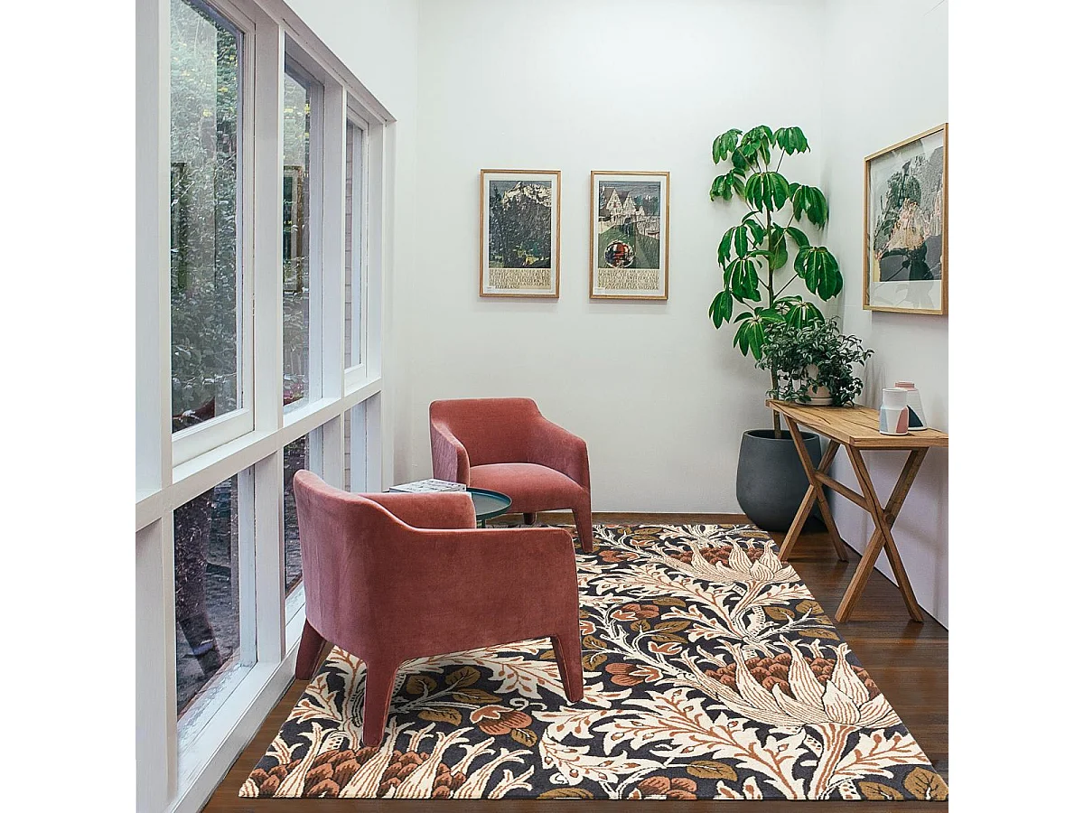 tappeto per camera da letto 170x240 realizzato a mano in lana arancio e salmone fantasia floreale