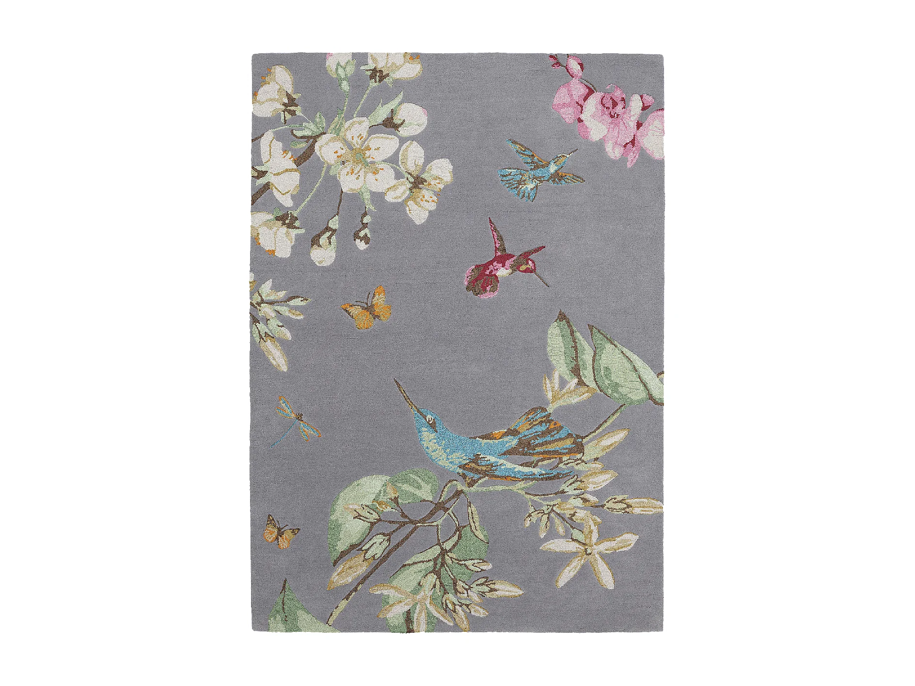 tappeto per camera da letto 170x240 realizzato a mano in lana grigio e panna fantasia floreale