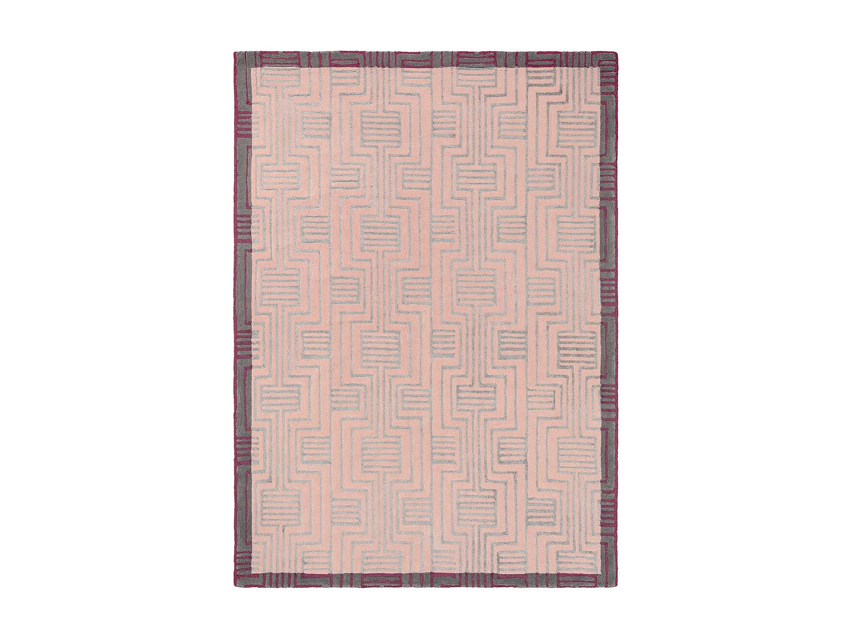 tappeto per camera da letto 170x240 realizzato a mano in lana rosa con motivo geometrico rettangolare