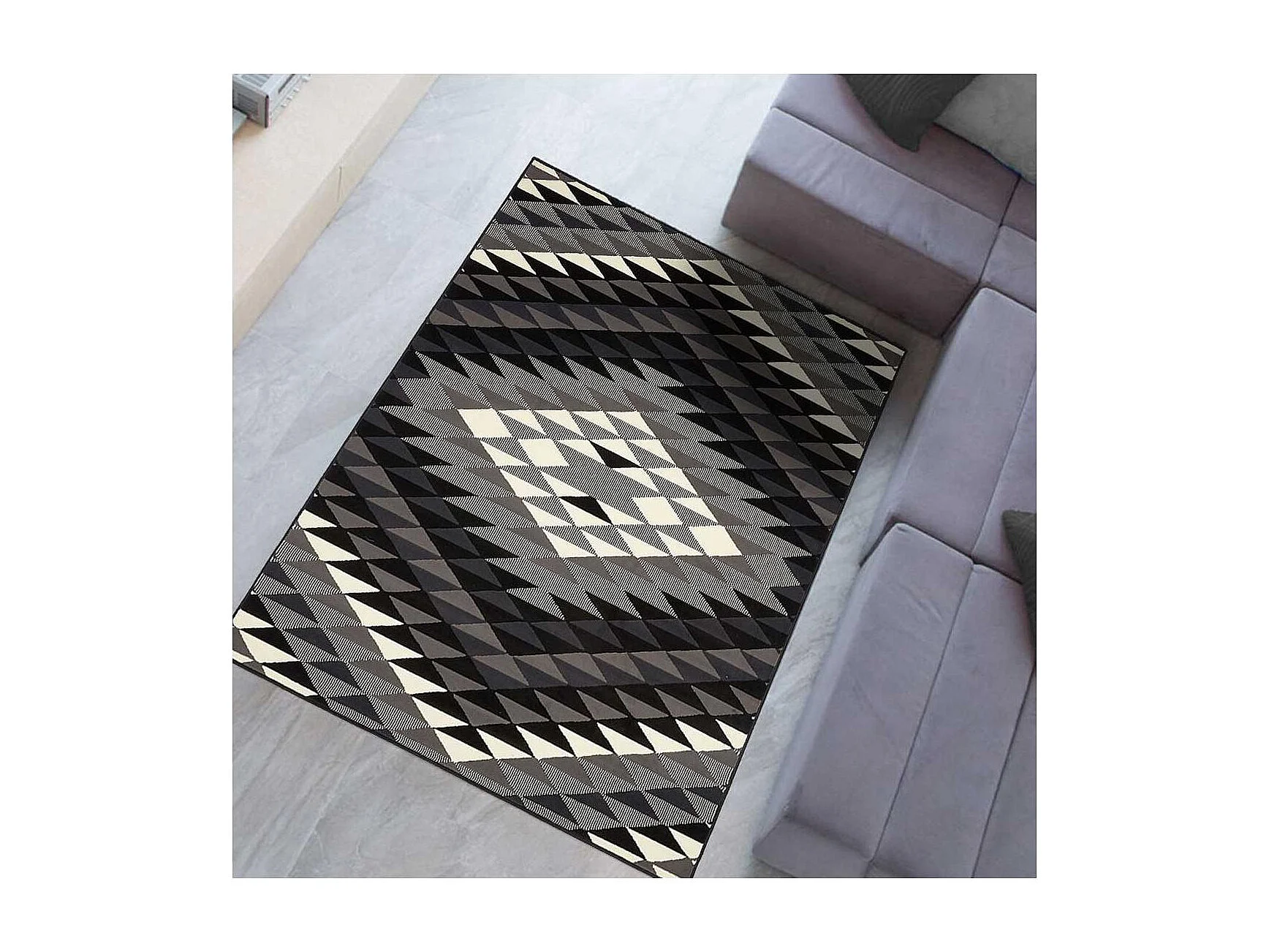 tappeto per camera da letto 60x110 tessuto rettangolare nero motivo geometrico LYN49 APACHE