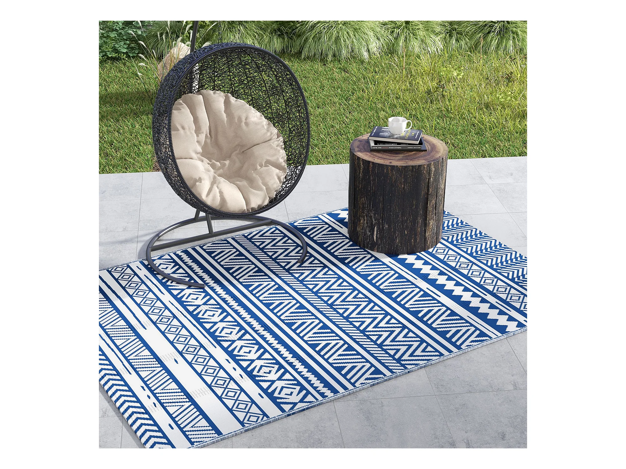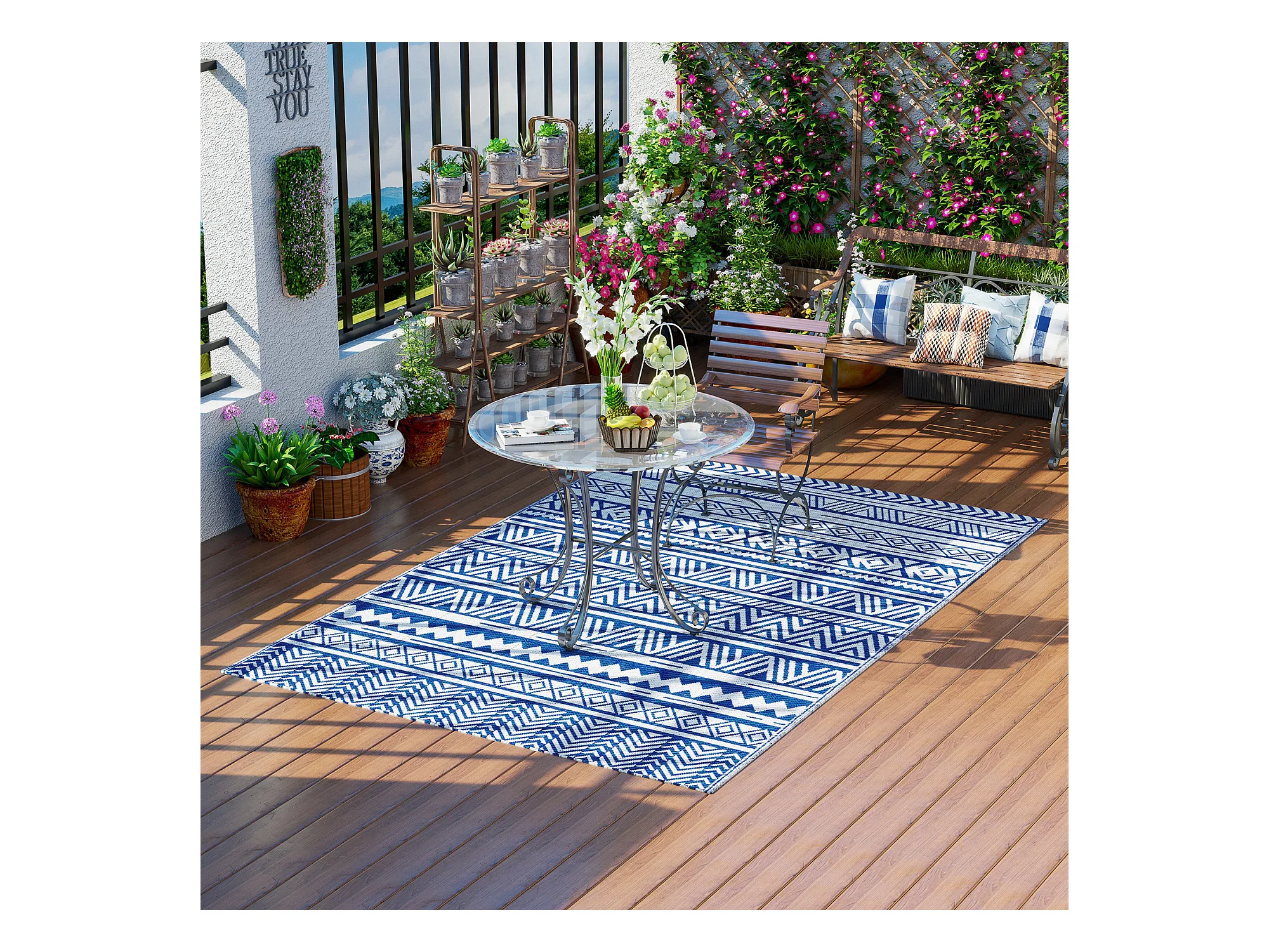 Tappeto per esterno 182x274 cm reversibile blu e bianco