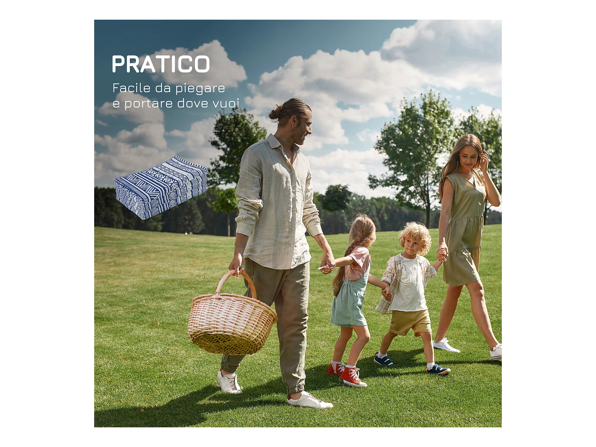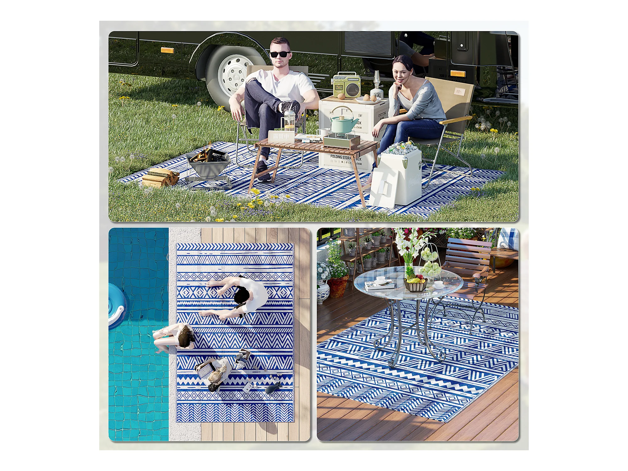 Tappeto da esterno reversibile con borsa 1.8x2.7cm blu e bianco