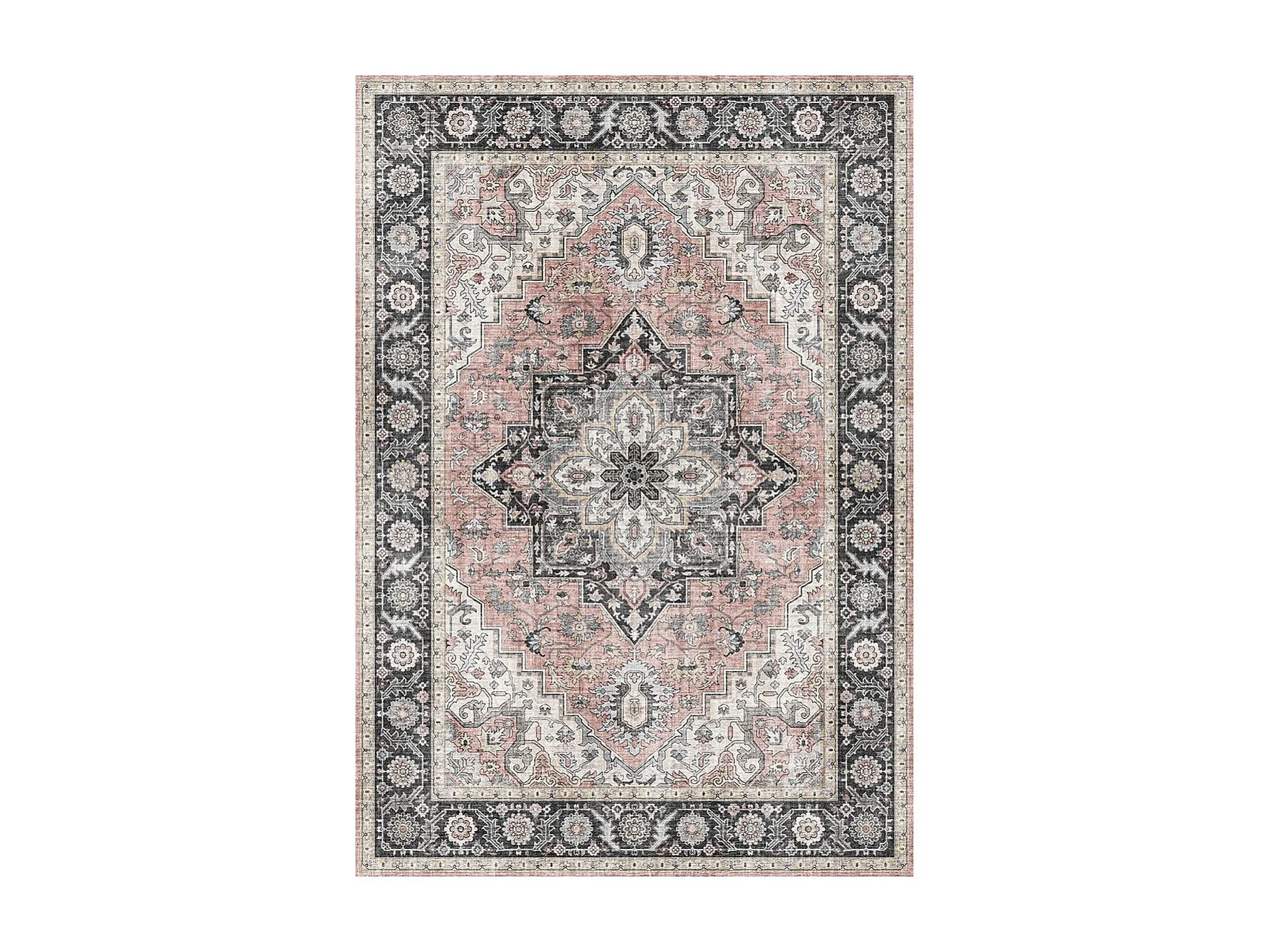 tappeto per sala da pranzo 160x230 tessuto rettangolare rosa e grigio motivo orientale